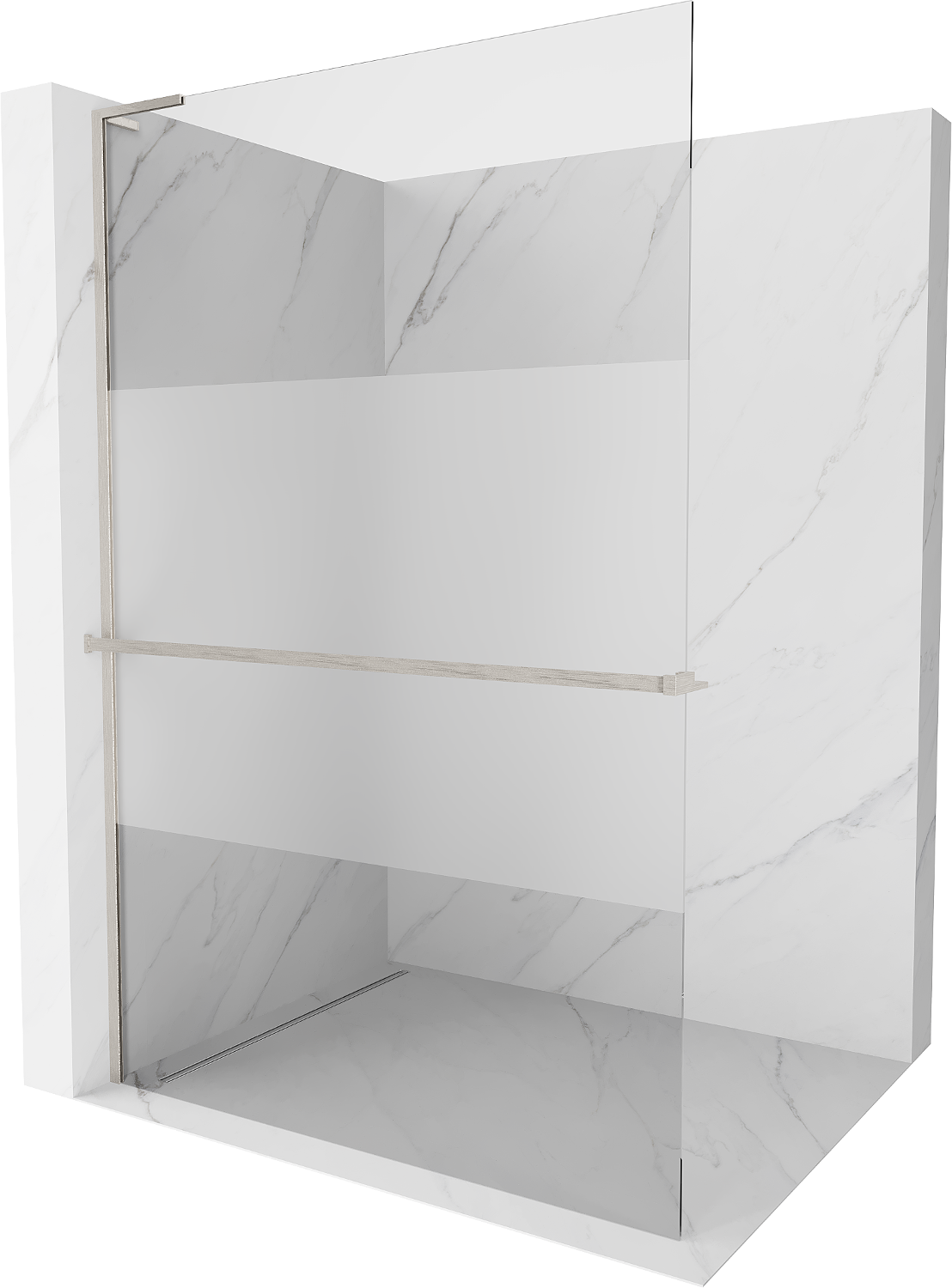 Mexen Kioto+ L shower wall with shelf Walk-in 120 x 200 cm, transparent/frosted, brushed nickel - 800-120-123-97-35