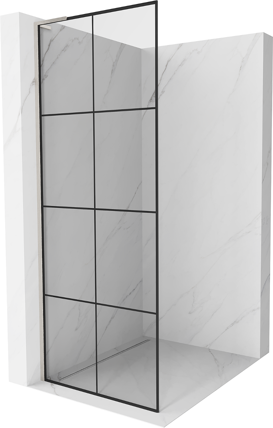 Mexen Kioto L Walk-in Shower Screen 80 x 200 cm, Black Grid, Brushed Nickel - 800-080-103-97-77