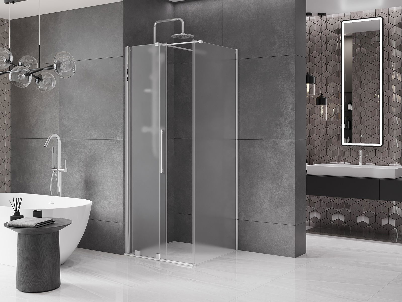 Mexen Velar 90 x 90 cm Sliding Shower Enclosure, Frosted, Chrome - 871-090-090-31-01
