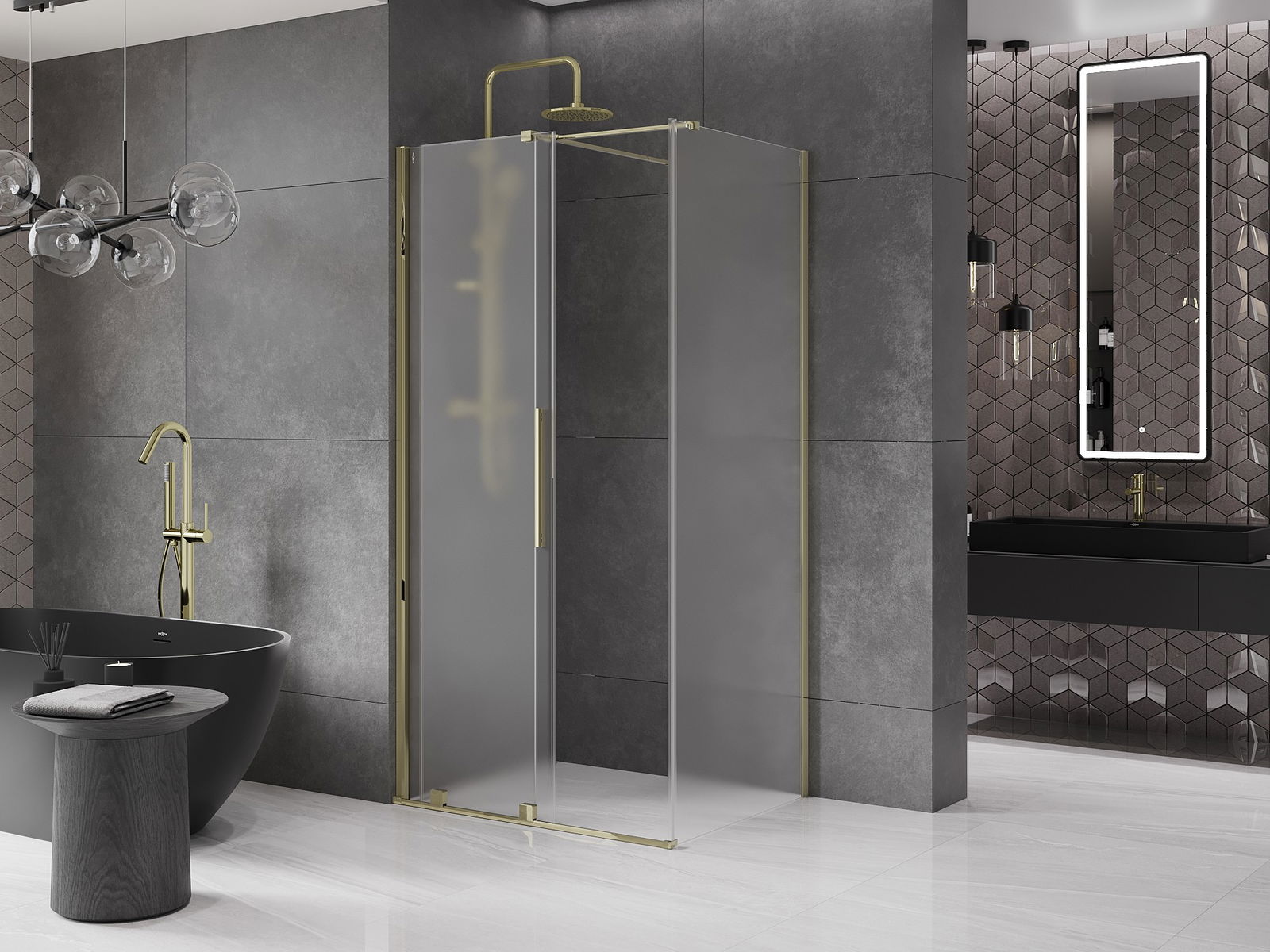 Mexen Velar sliding shower enclosure 140 x 100 cm, frost, gold - 871-140-100-31-50