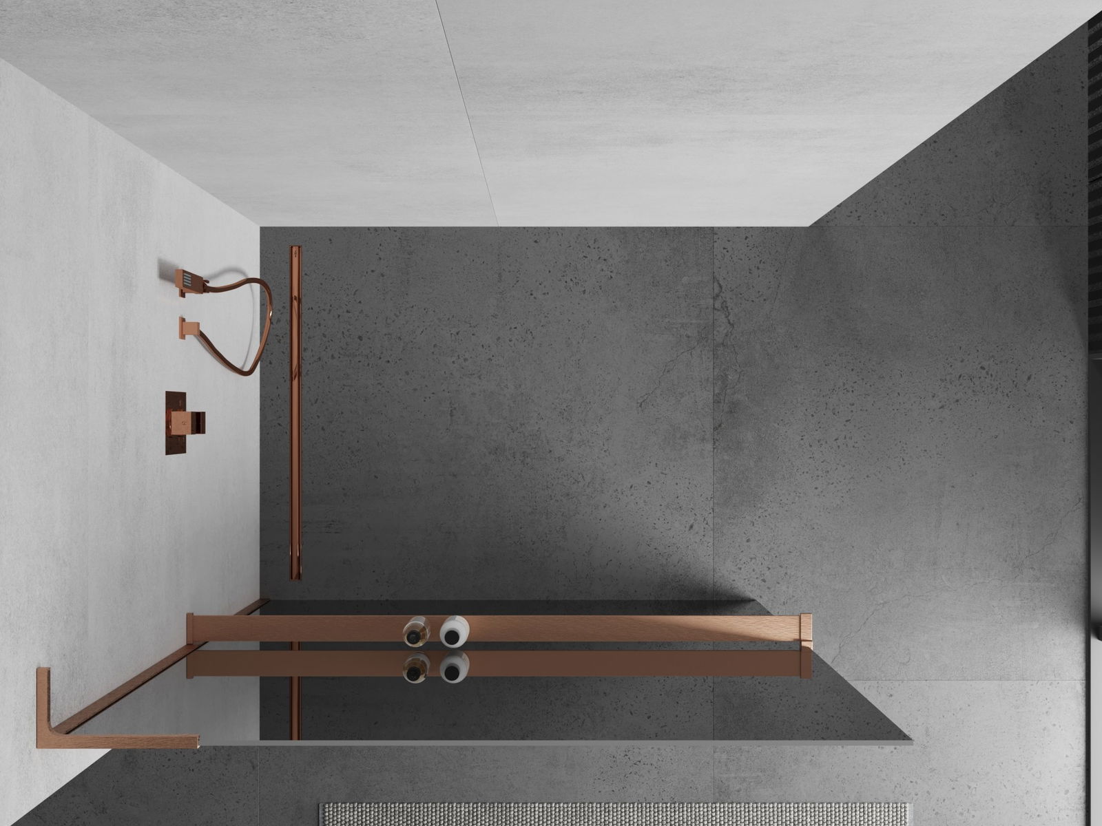 Mexen Kioto+ L shower panel with shelf Walk-in 110 x 200 cm, mirror, brushed copper - 800-110-123-65-50