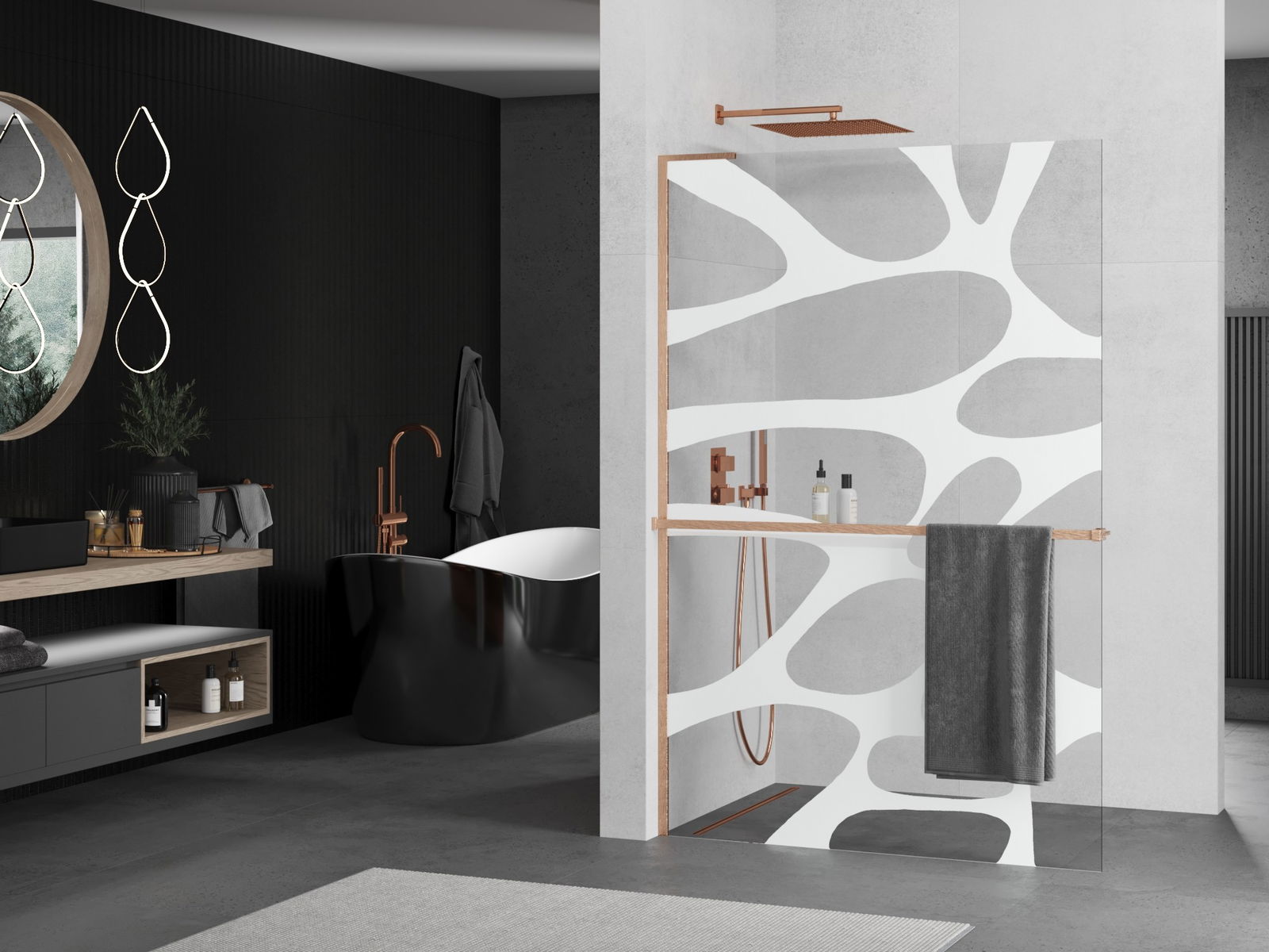 Mexen Kioto+ L shower wall with shelf Walk-in 100 x 200 cm, white wave, brushed copper - 800-100-123-65-97