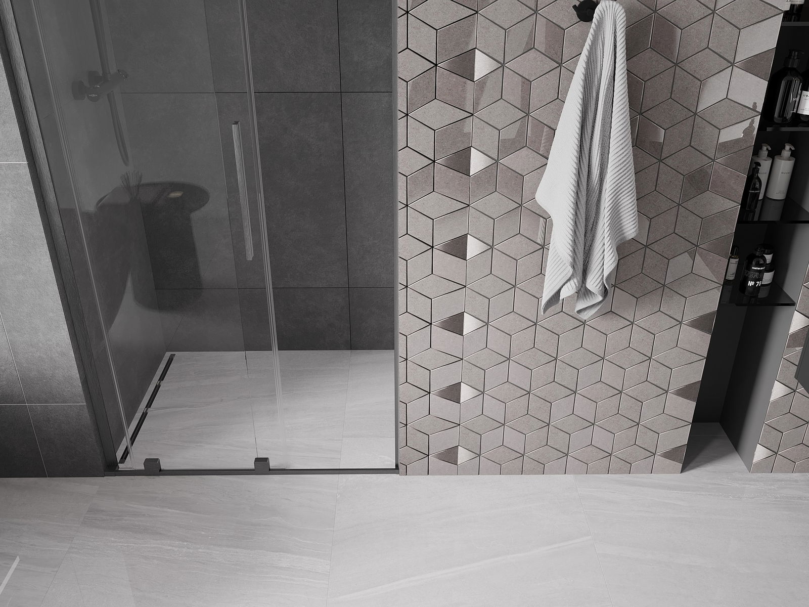 A handy and convenient handle made of stainless steel. The stylish shape combined with a finish that matches the color of the profiles gives a modern and stylish look, highlighting the aesthetics of any bathroom.