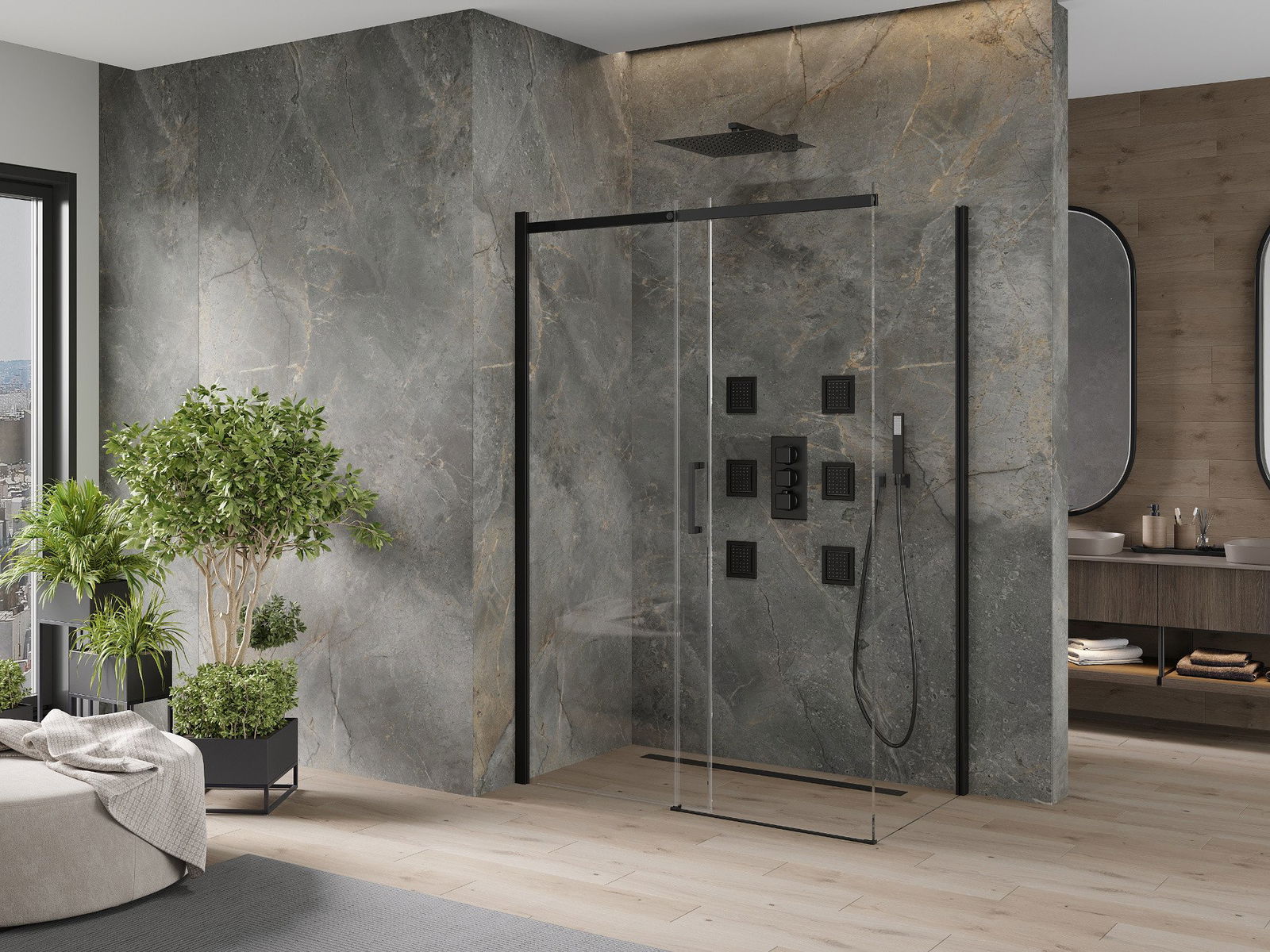 Sliding doors move around special guides and do not require additional space to open them, so they will work in smaller bathrooms. Thanks to double rollers with a metal body, their movement is fluid.