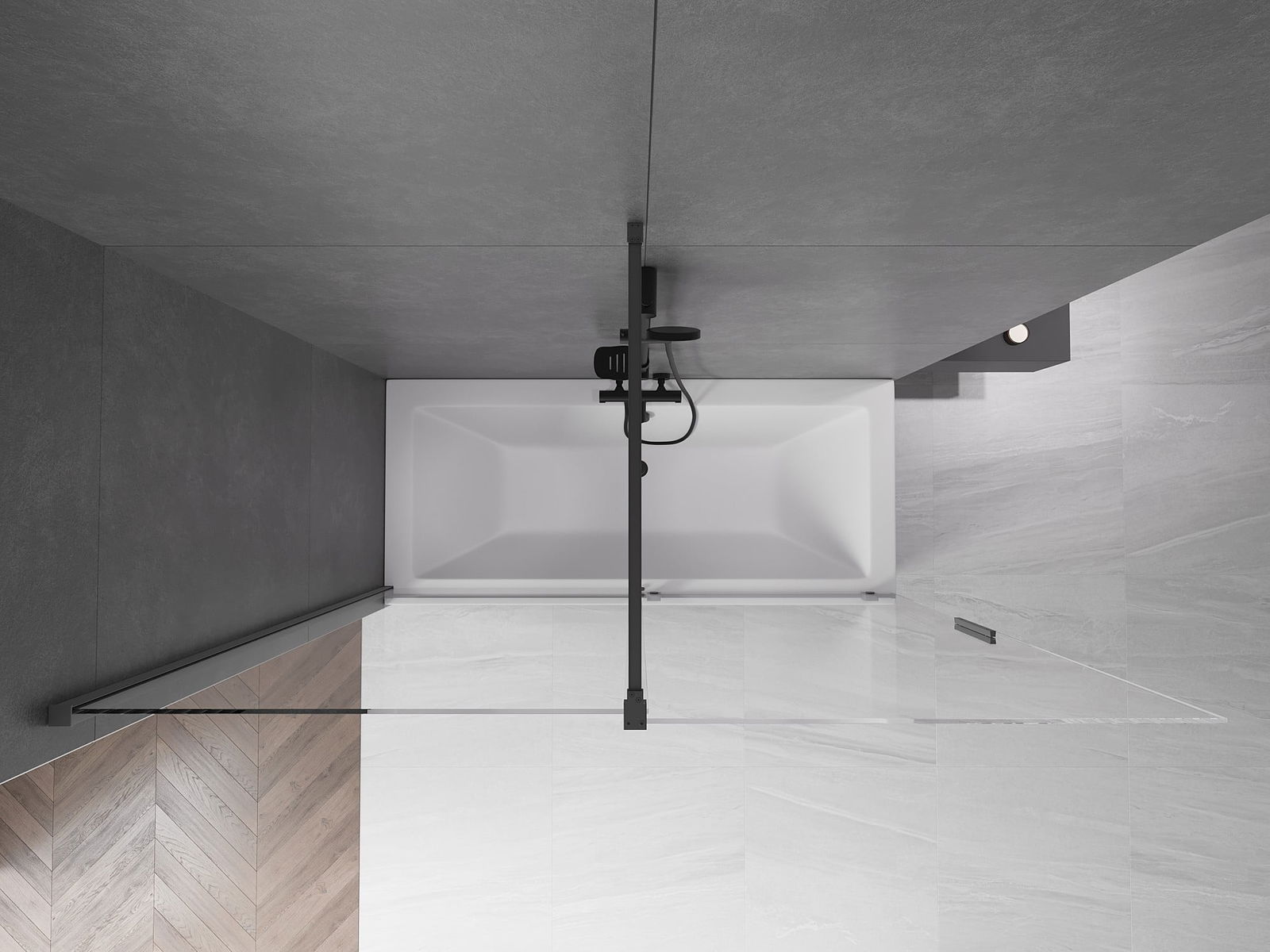 Effective protection against water spilling during bathing. The screen has seals that perfectly fit the glass surface and the edge of the bathtub. A functional solution ensuring safety and easy maintenance of cleanliness.