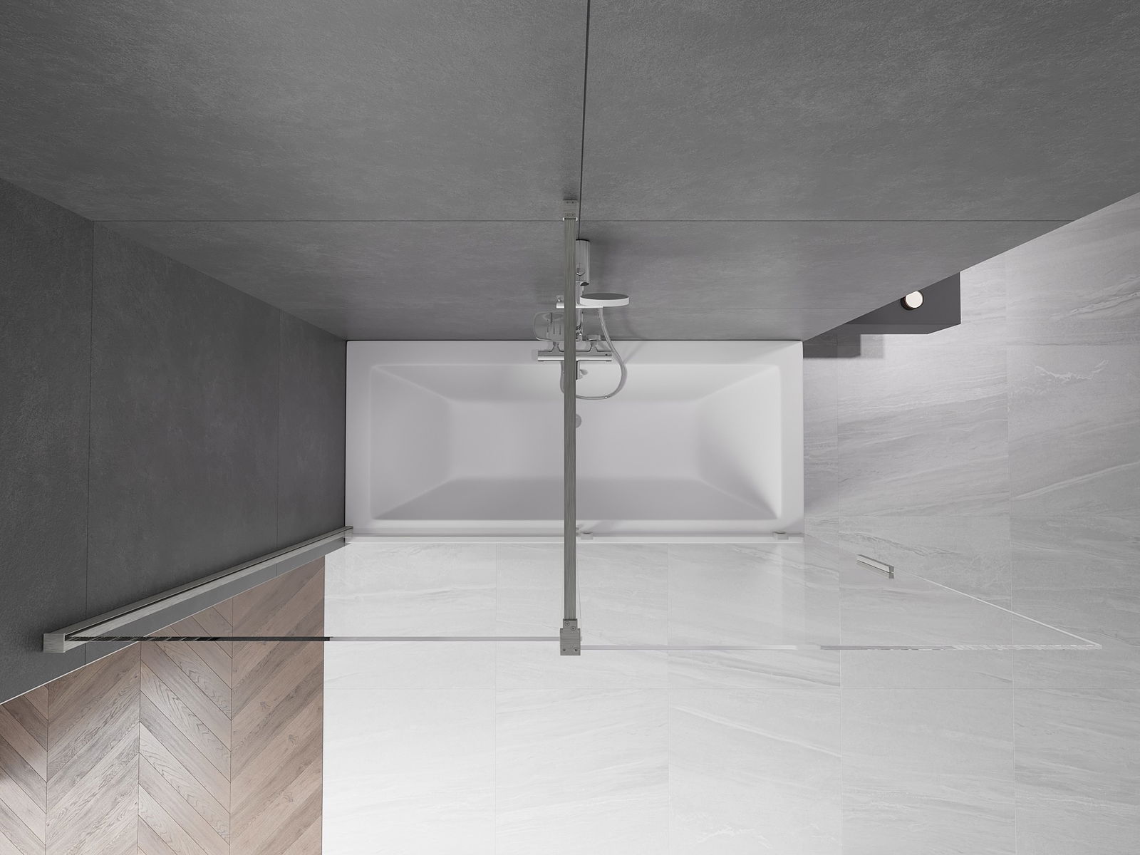 Effective protection against water spilling during bathing. The screen has seals that perfectly fit the glass surface and the edge of the bathtub. A functional solution ensuring safety and easy maintenance of cleanliness.