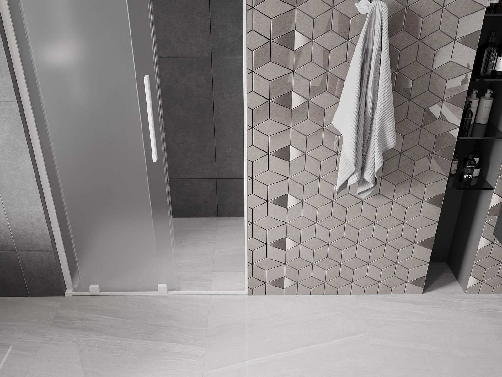 A handy and convenient handle made of stainless steel. The stylish shape combined with a finish that matches the color of the profiles gives a modern and stylish look, highlighting the aesthetics of any bathroom.
