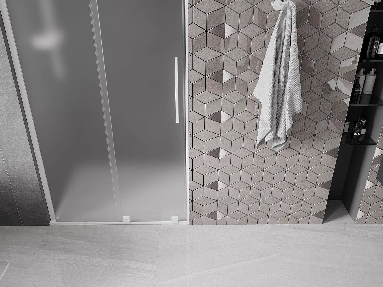 A handy and convenient handle made of stainless steel. The stylish shape combined with a finish that matches the color of the profiles gives a modern and stylish look, highlighting the aesthetics of any bathroom.