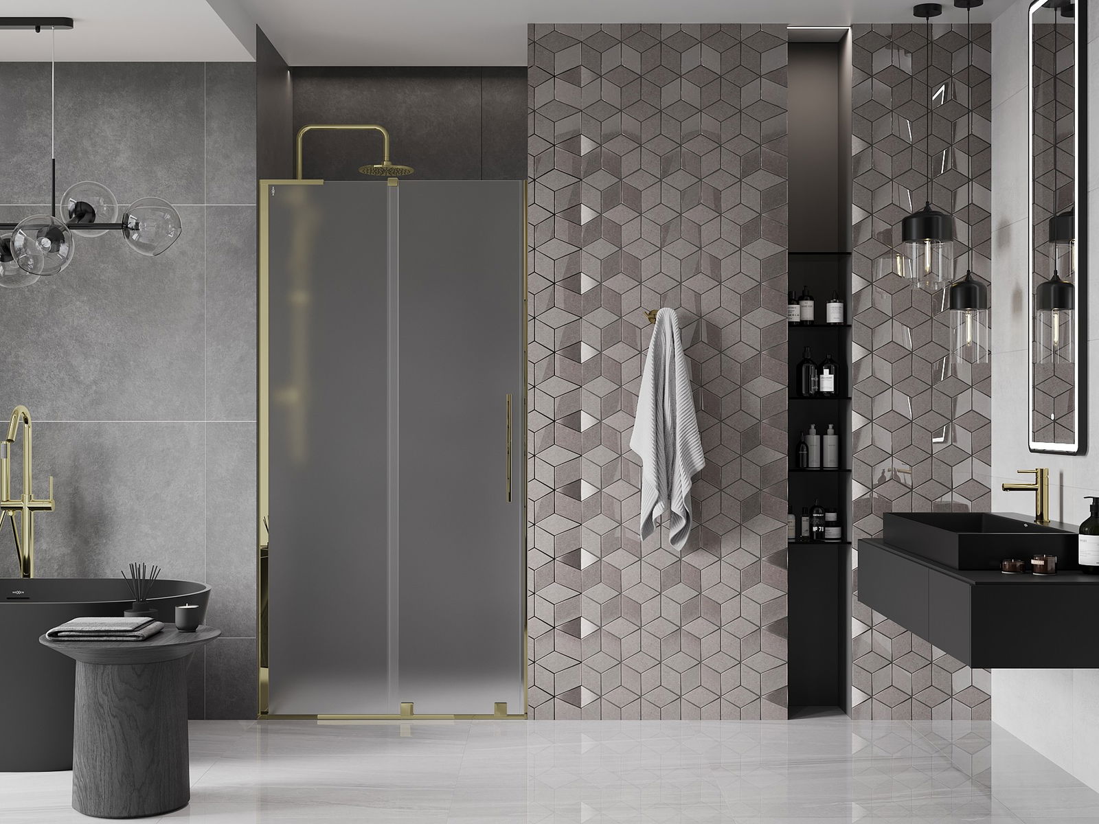 Mexen Velar L sliding shower door 90 cm, frost, gold - 871-090-003-31-50