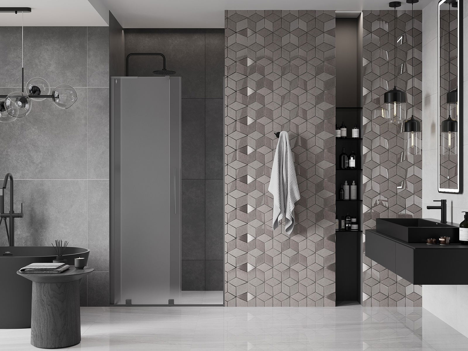 Mexen Velar L sliding shower door 90 cm, frosted, gun metal - 871-090-003-31-95