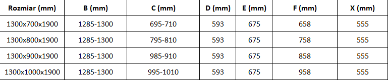 Size: 130x70 cm (doors 130 cm, wall 70 cm)