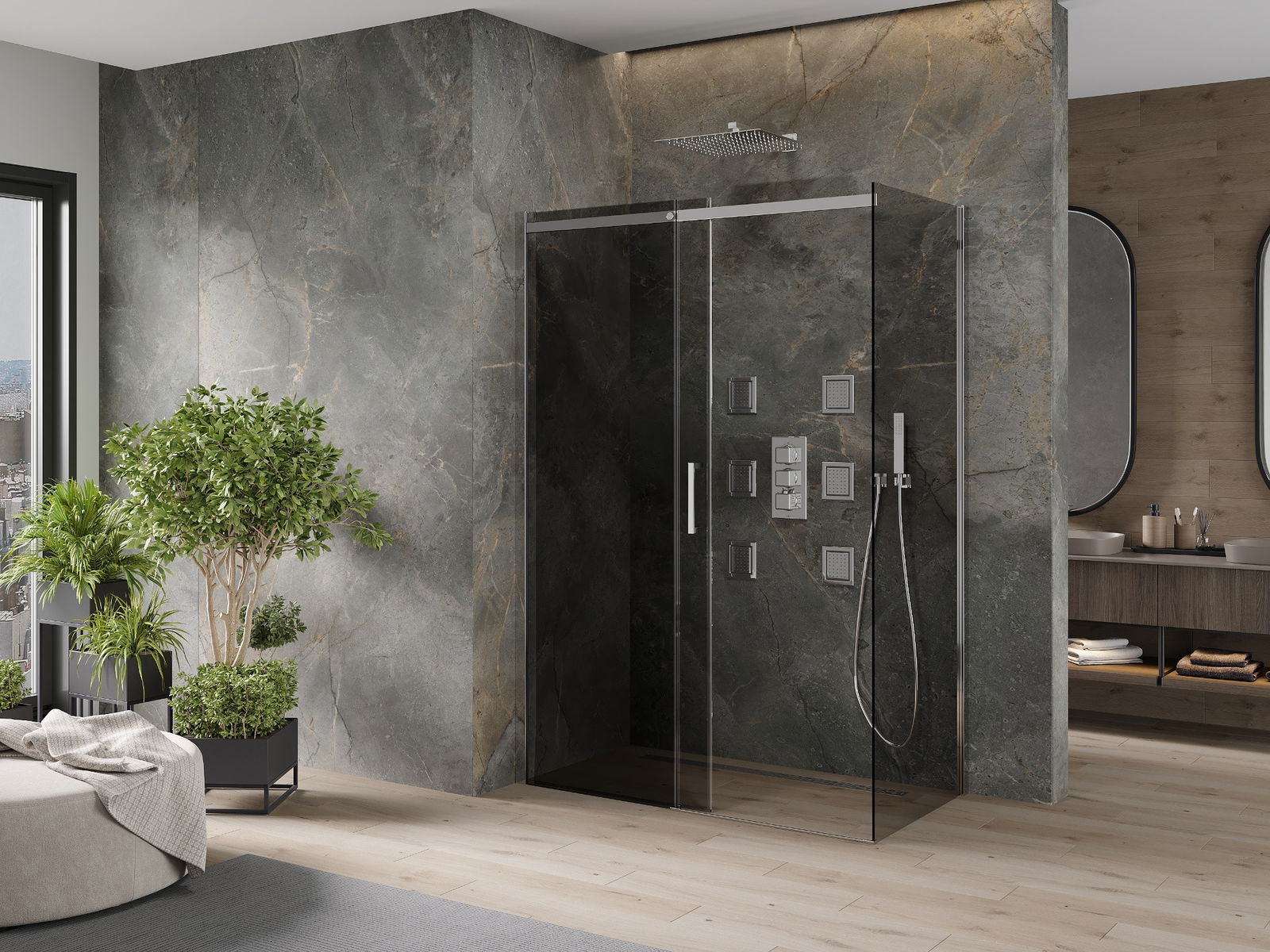 Sliding doors move around special guides and do not require additional space to open them, so they will work in smaller bathrooms. Thanks to double rollers with a metal body, their movement is fluid.