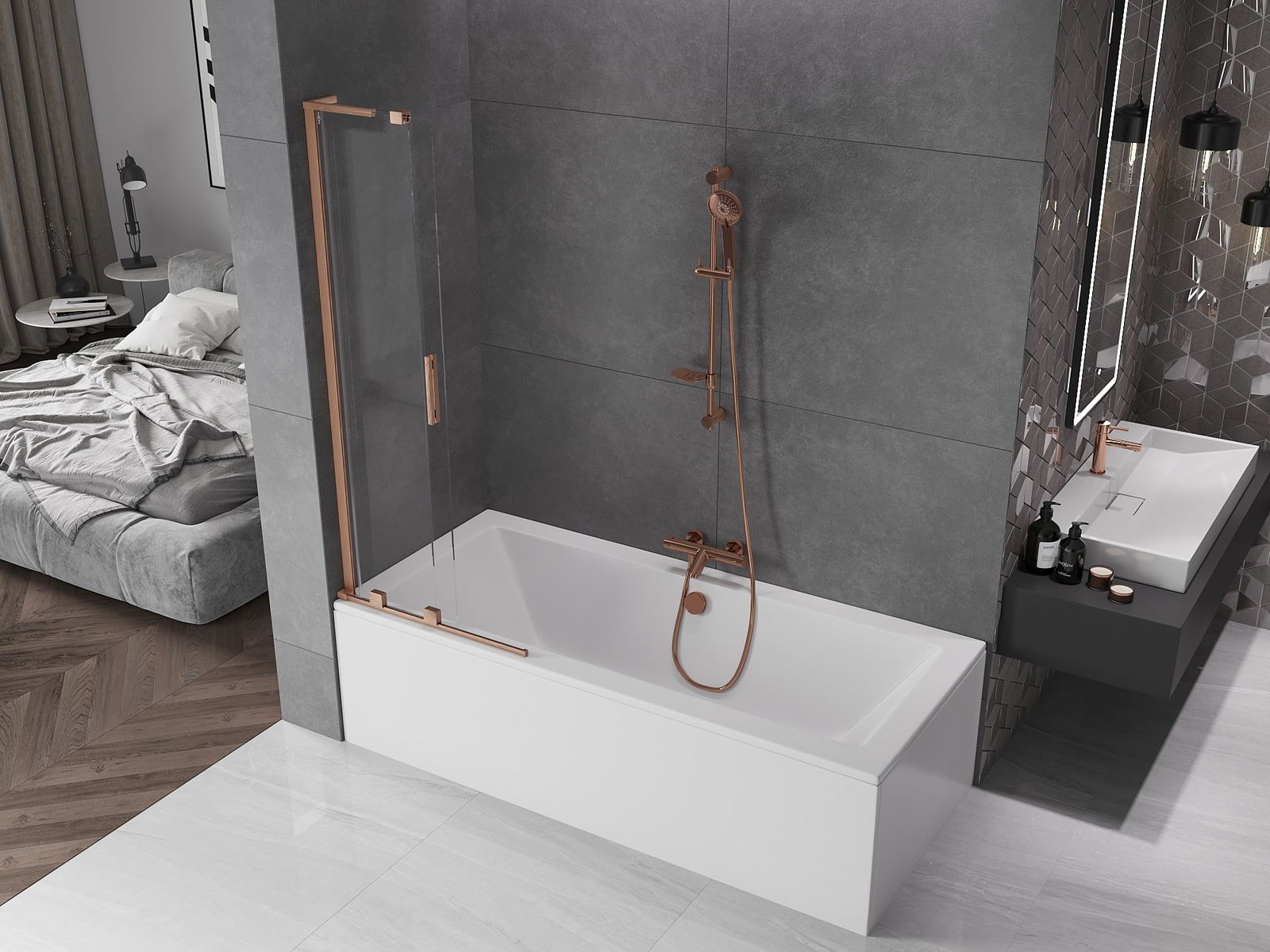 Mexen Velar L 2-wing sliding bath screen 70 x 150 cm, transparent, brushed copper - 896-070-003-01-65