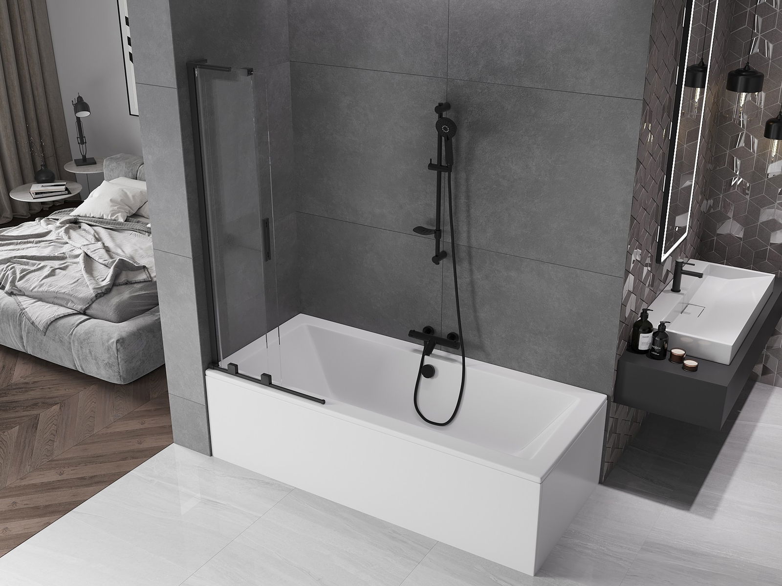 Mexen Velar L bathtub screen 2-wing sliding 75 x 150 cm, transparent, black - 896-075-003-01-70