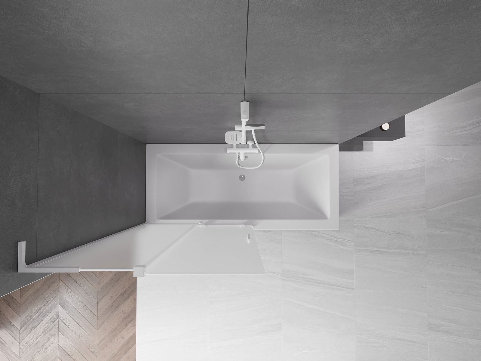 Effective protection against water spilling during bathing. The screen has seals that perfectly fit the glass surface and the edge of the bathtub. A functional solution ensuring safety and easy maintenance of cleanliness.