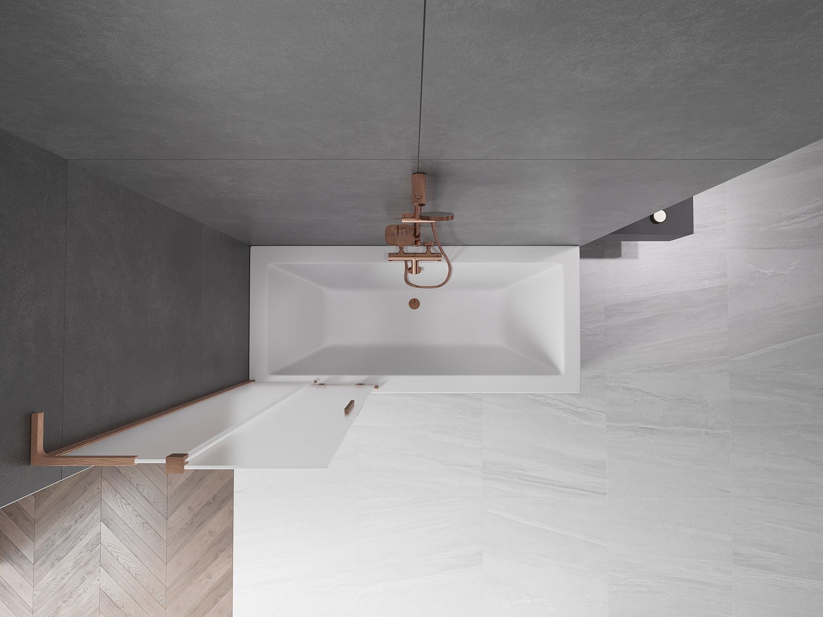 Mexen Velar L Bath Screen 2-Wing Sliding 75 x 150 cm, Frost, Brushed Copper - 896-075-003-31-65