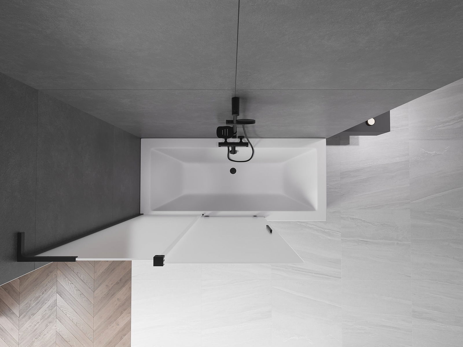 Effective protection against water spilling during bathing. The screen has seals that perfectly fit the glass surface and the edge of the bathtub. A functional solution ensuring safety and easy maintenance of cleanliness.