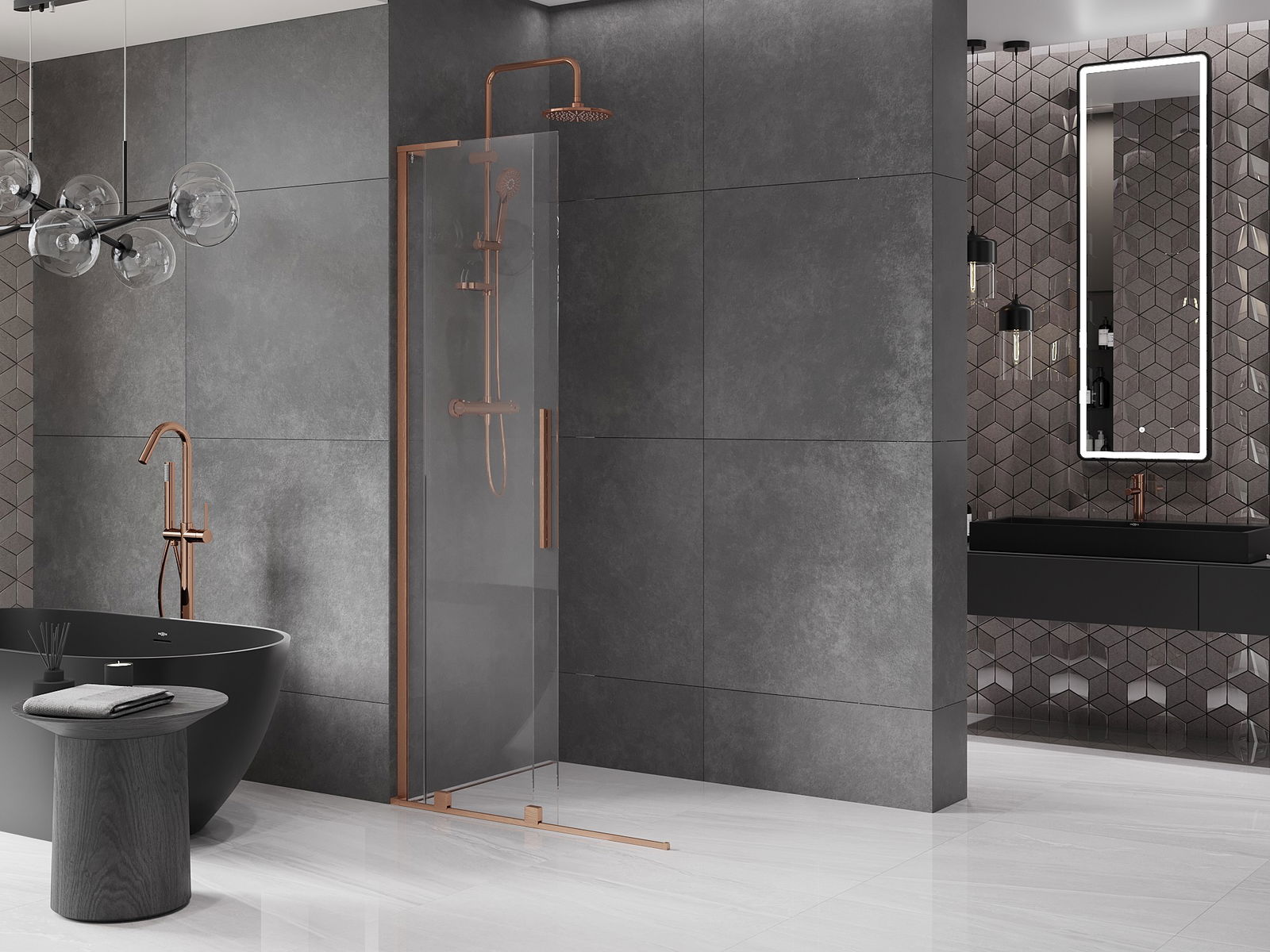 Mexen Velar L Sliding Shower Wall Walk-in 120 x 200 cm, Transparent 8 mm, Brushed Copper - 871-120-003-03-65