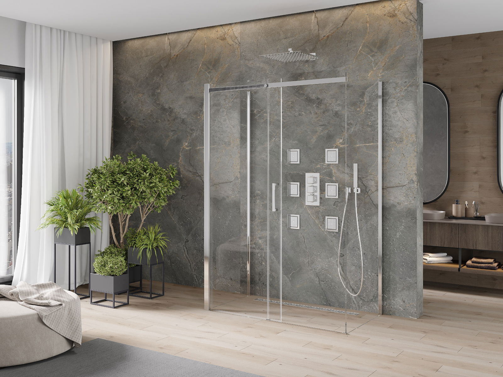 Mexen Omega-3S 3-sided shower enclosure, sliding 140 x 80 cm, transparent, chrome - 825-140-080-01-00-3S