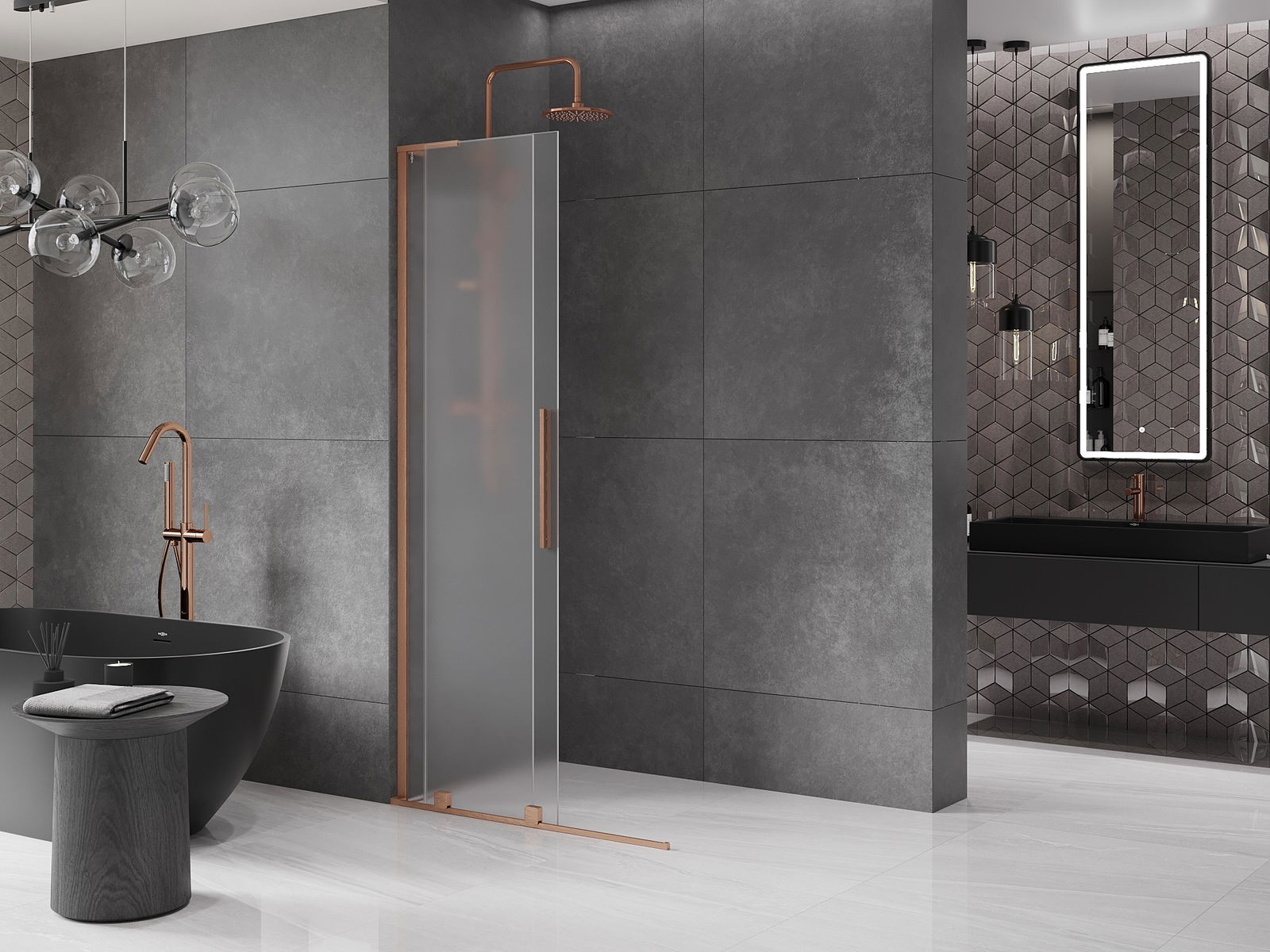 Mexen Velar L sliding shower screen Walk-in 120 x 200 cm, frost 8 mm, brushed copper - 871-120-003-33-65