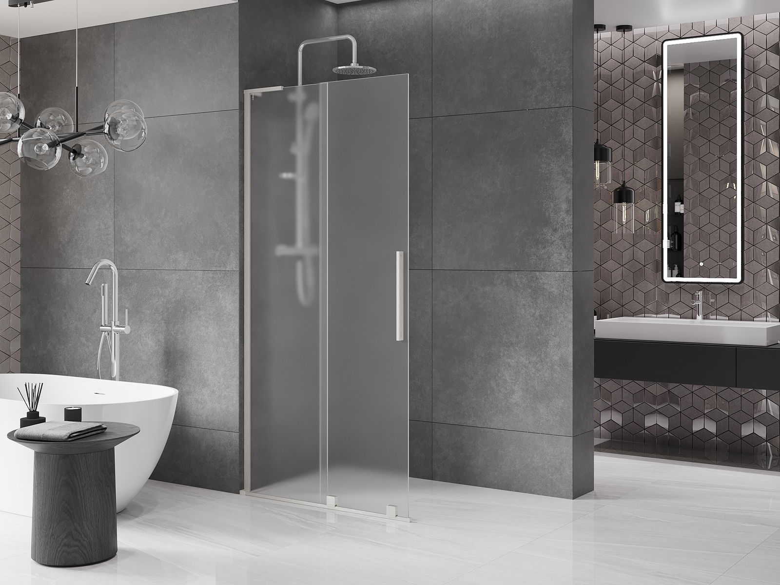 Mexen Velar L Sliding Walk-in Shower Wall 100 x 200 cm, Frosted 8 mm, Brushed Nickel - 871-100-003-33-97