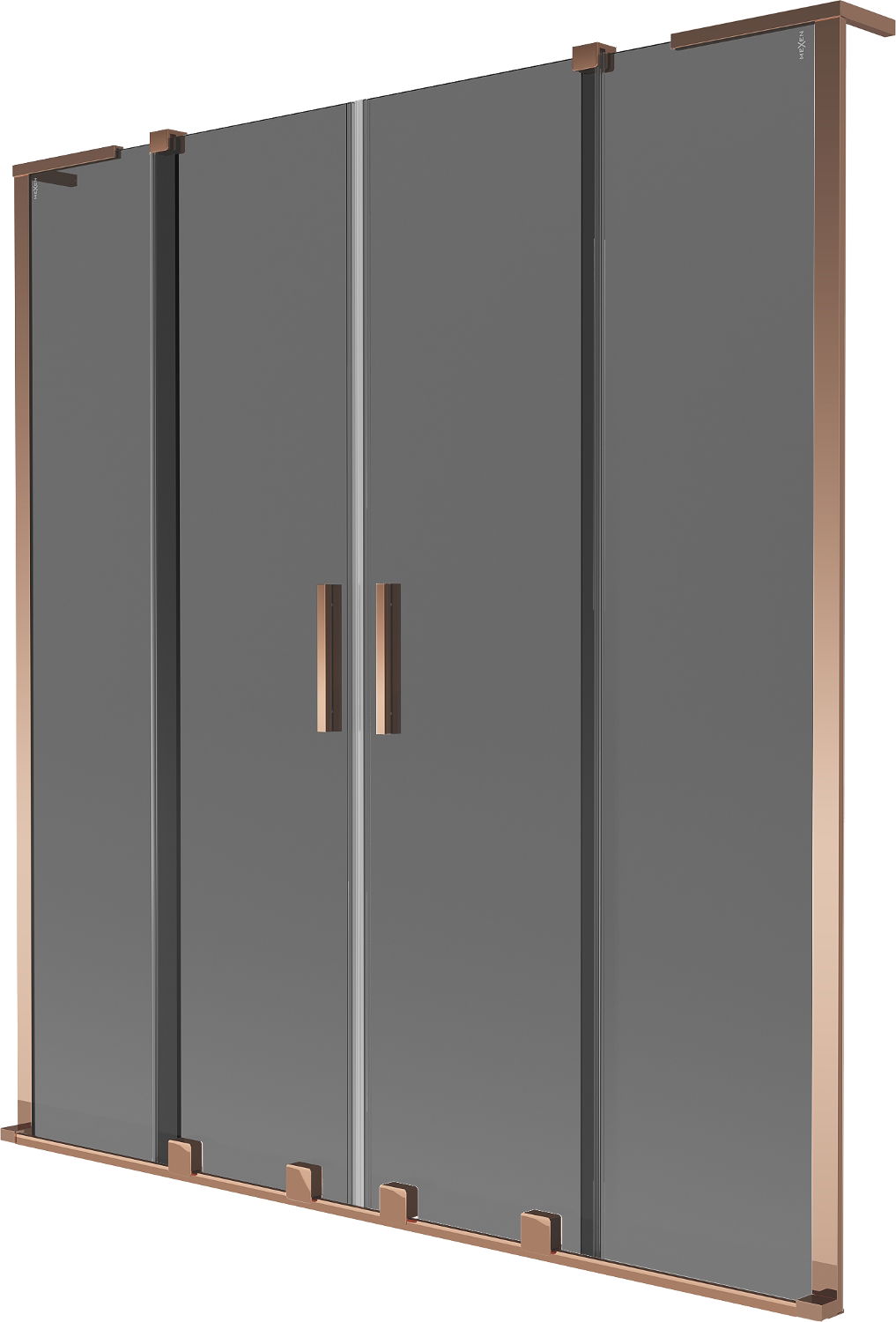 Mexen Velar L Duo bath screen 2-panel sliding 150 x 150 cm, graphite, rose gold - 896-150-003-42-60