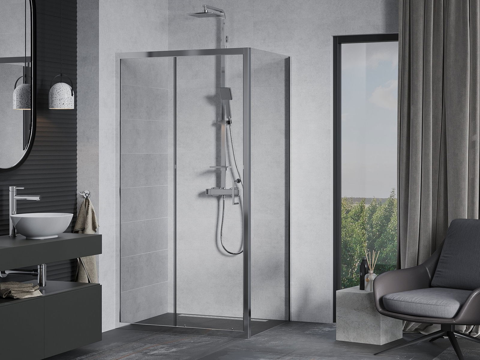 The handy and comfortable handle is made of durable and resistant metal. The fashionable shape, combined with a finish matching the color of the profiles, gives the whole a modern and stylish look, emphasizing the aesthetics of any bathroom.
