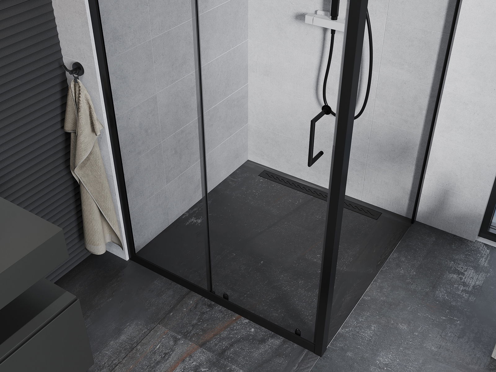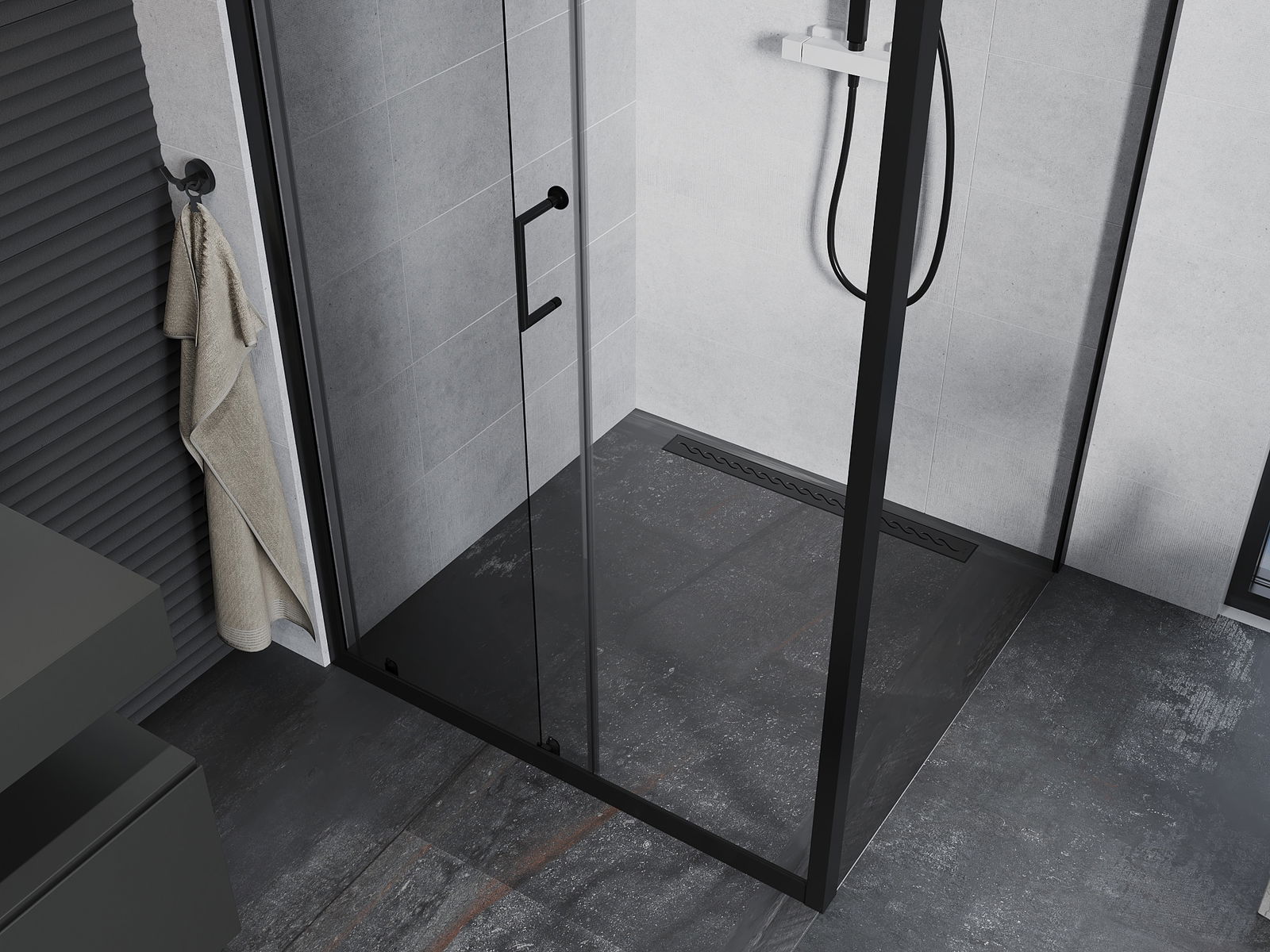 The handy and comfortable handle is made of durable and resistant metal. The fashionable shape, combined with a finish matching the color of the profiles, gives the whole a modern and stylish look, emphasizing the aesthetics of any bathroom.