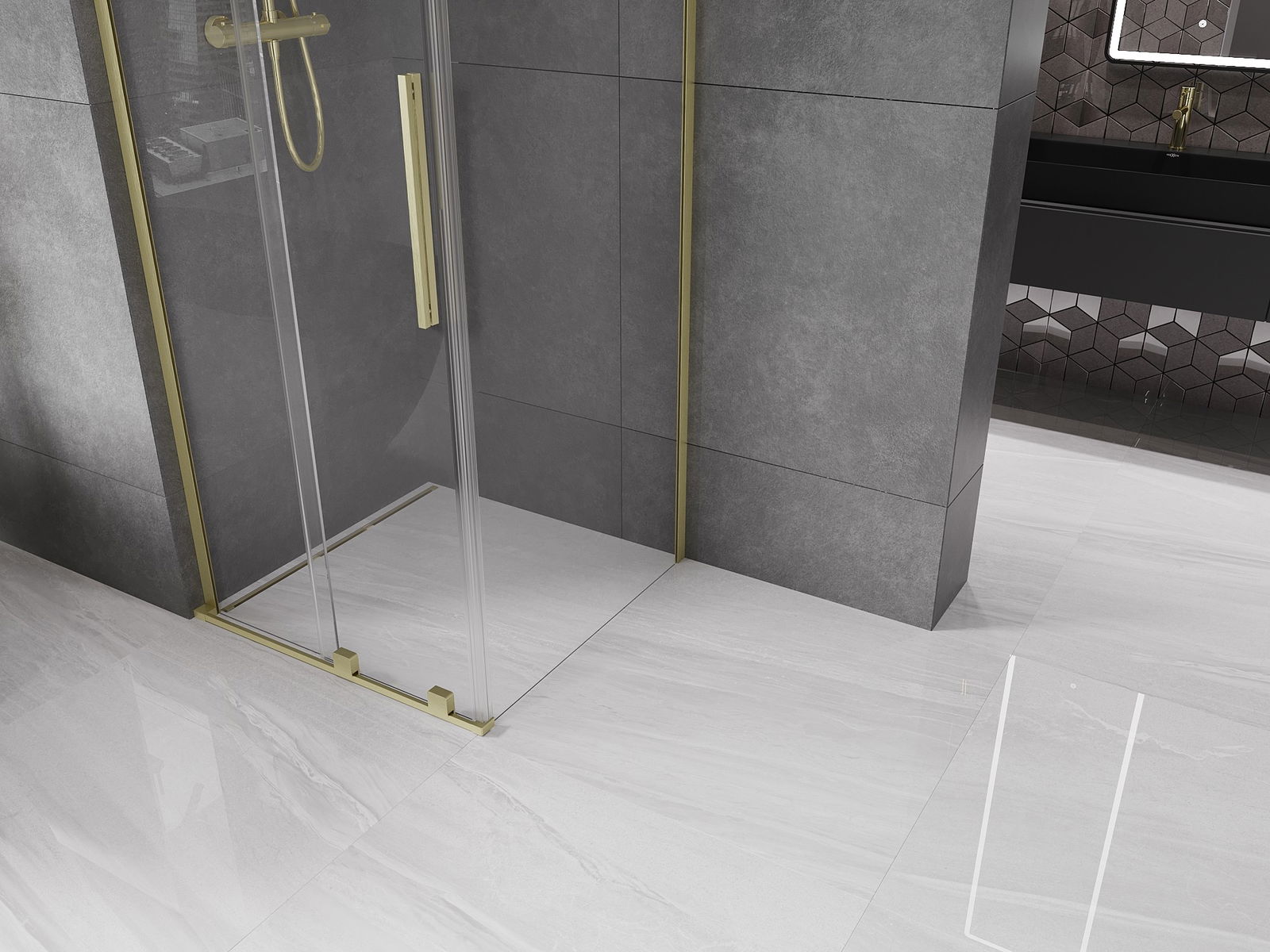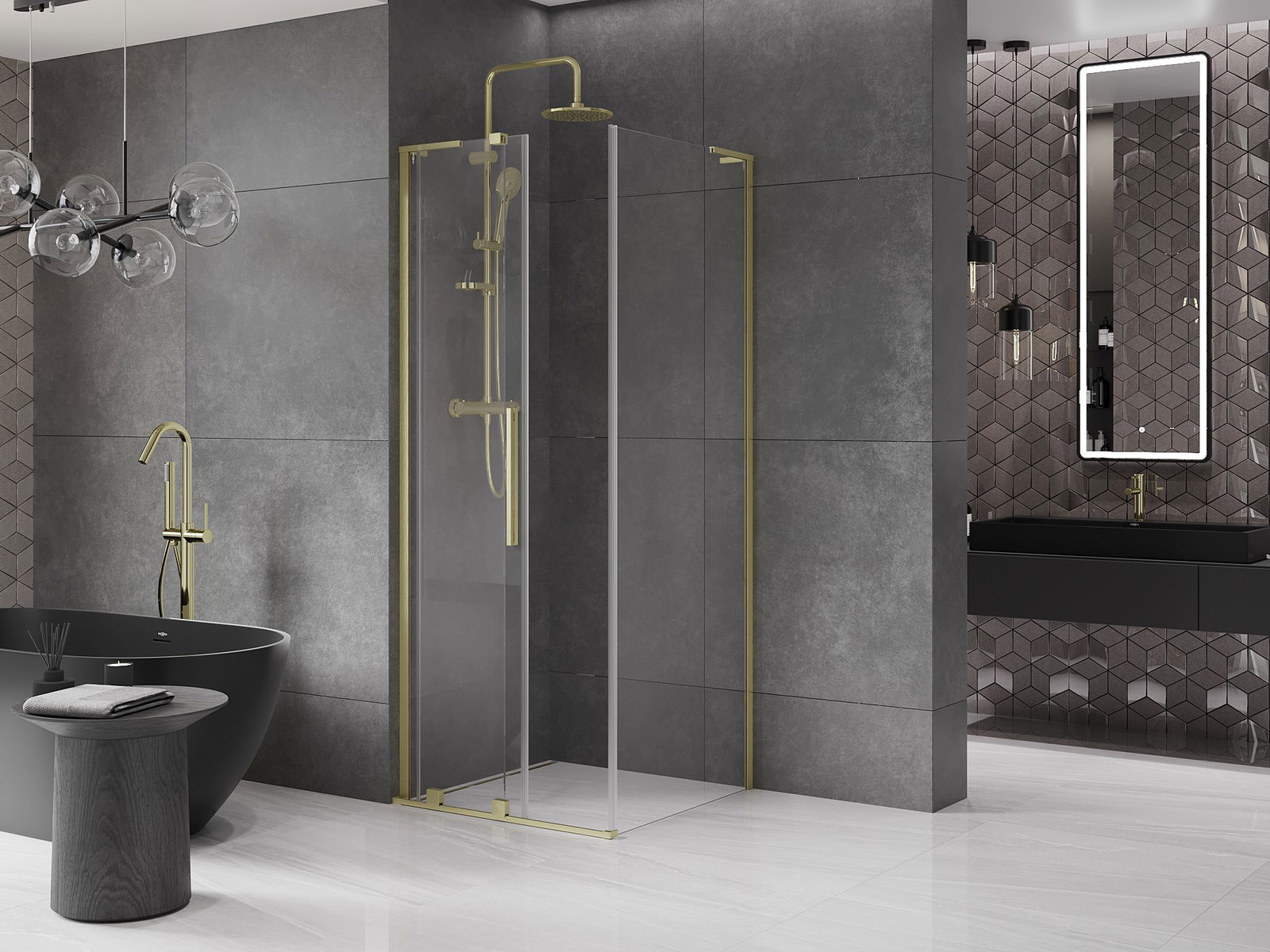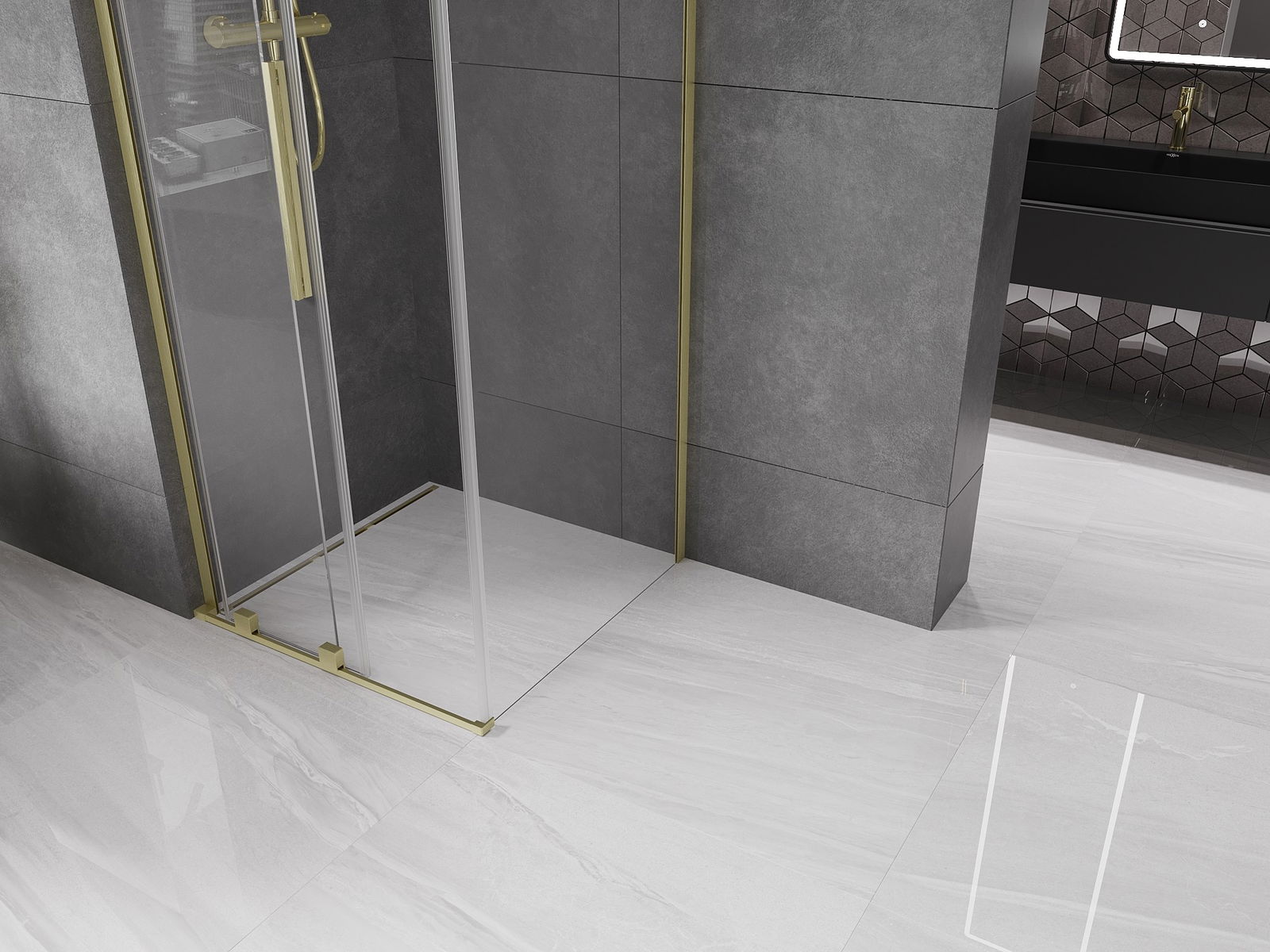 Mexen Velar L sliding shower cabin 100 x 100 cm, transparent, brushed gold - 871-100-100-03-55
