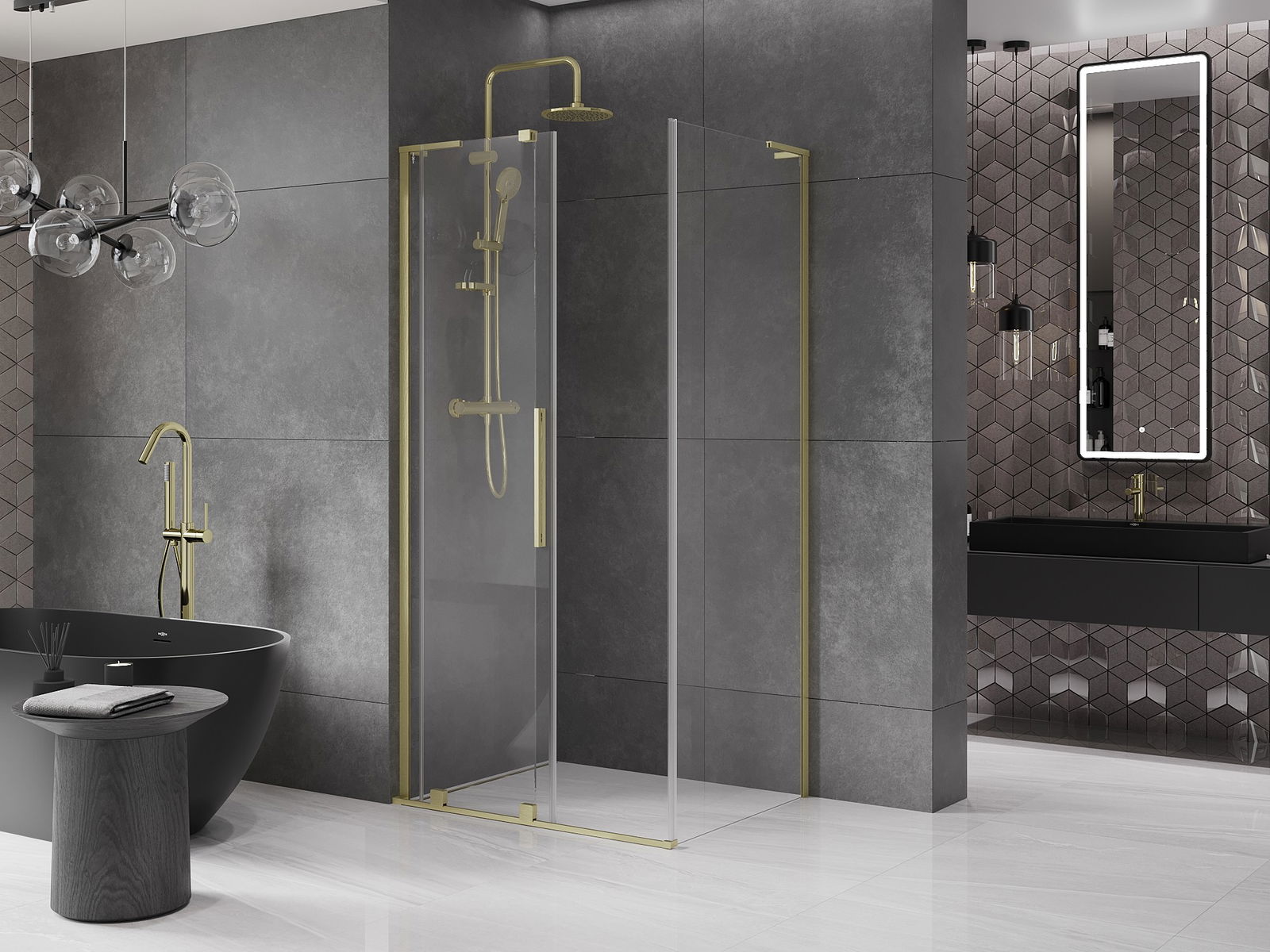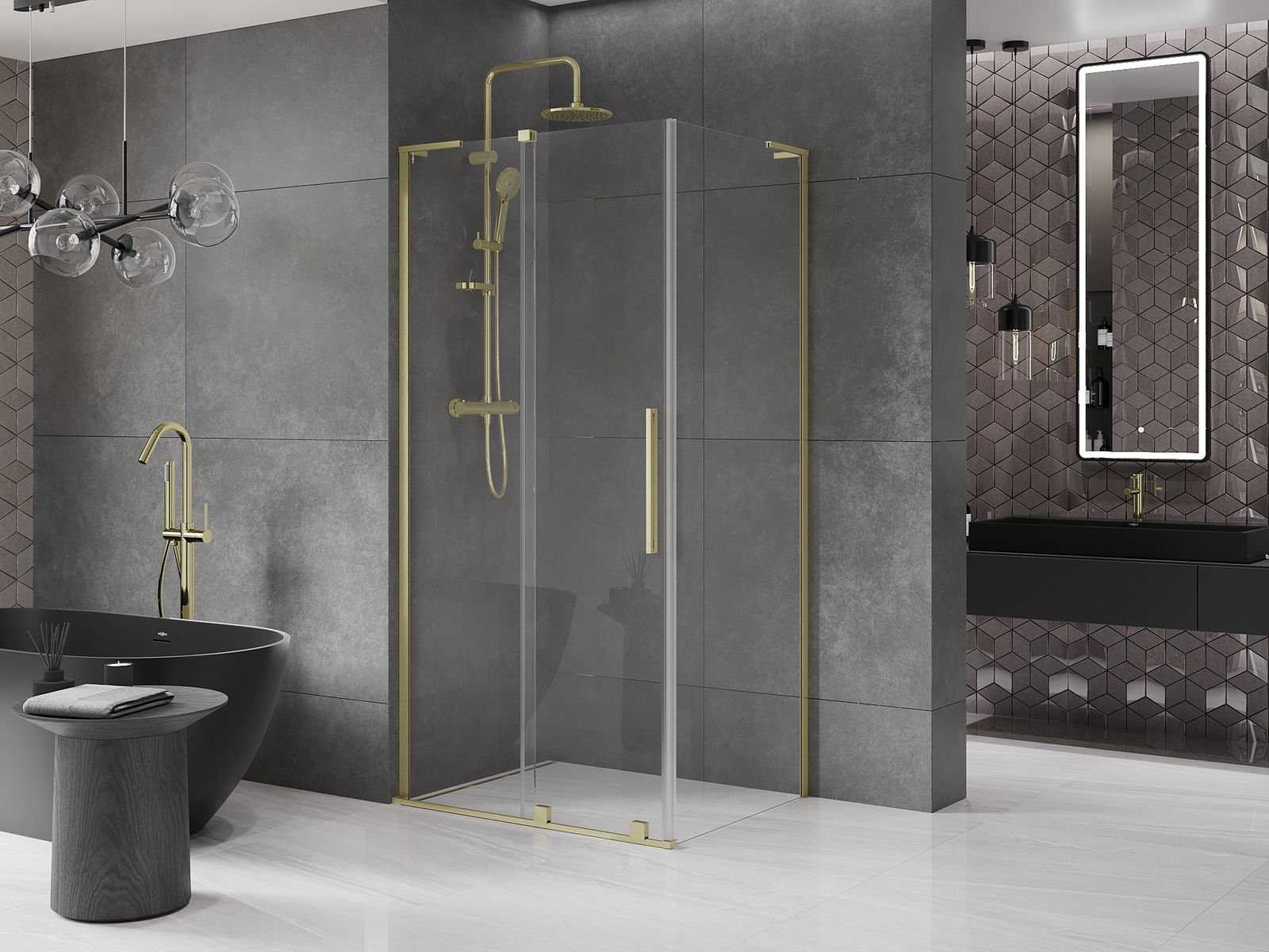 Mexen Velar L Sliding Shower Enclosure 110 x 75 cm, Transparent, Brushed Gold - 871-110-075-03-55