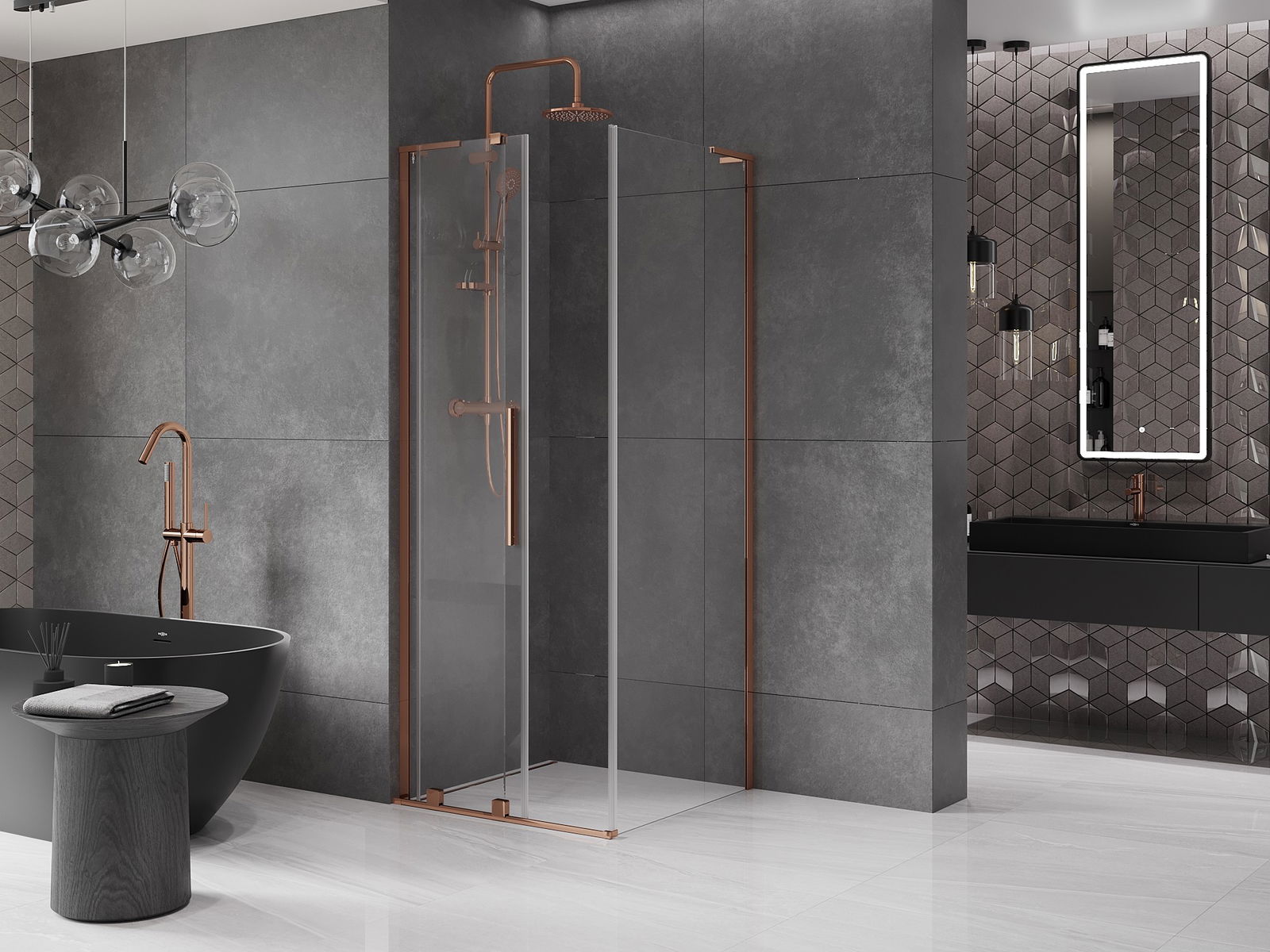 Mexen Velar L Sliding Shower Enclosure 90 x 90 cm, Transparent, Rose Gold - 871-090-090-03-60