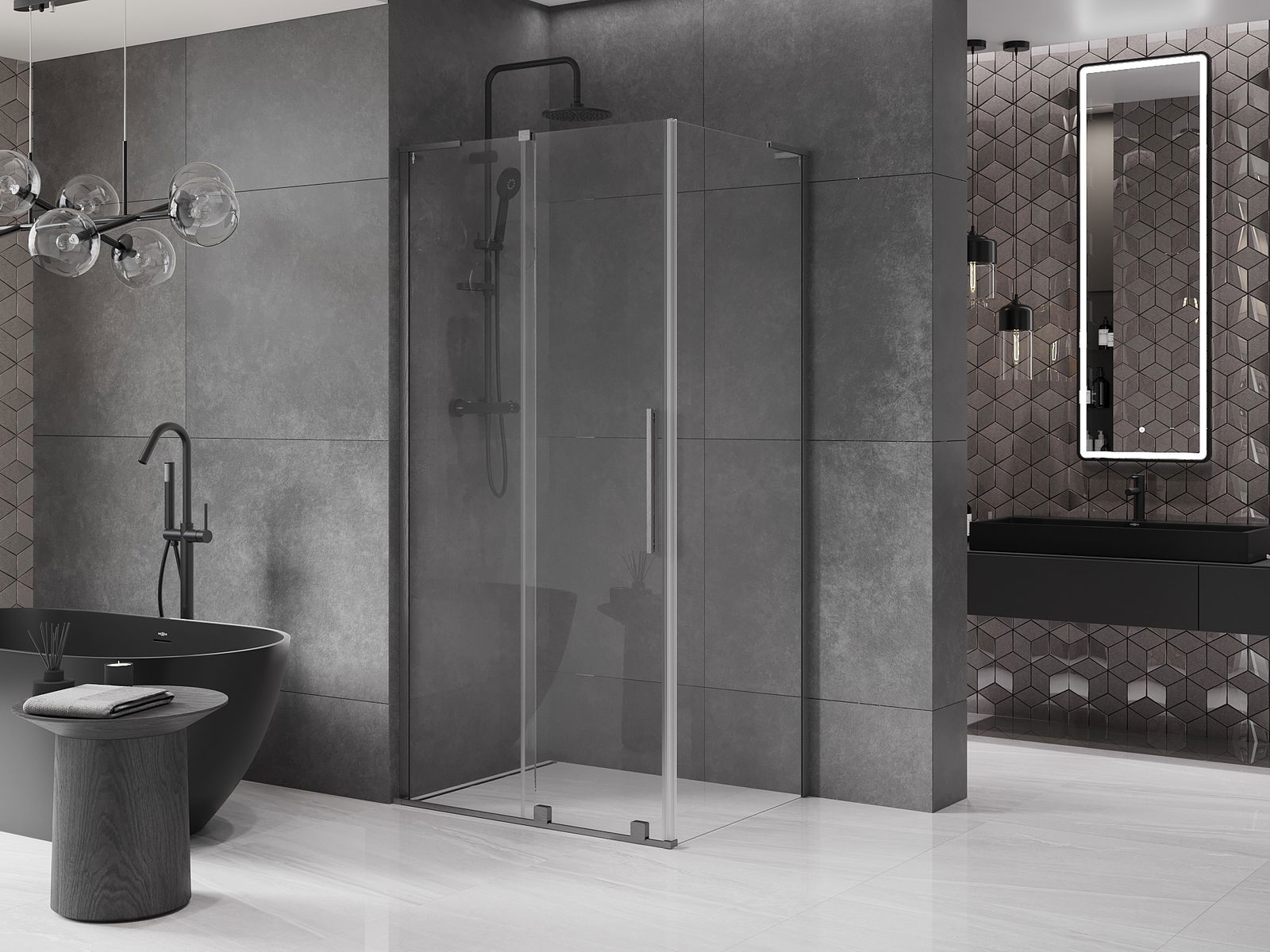 Mexen Velar L sliding shower cabin 90 x 100 cm, transparent, brushed gun gray - 871-090-100-03-66