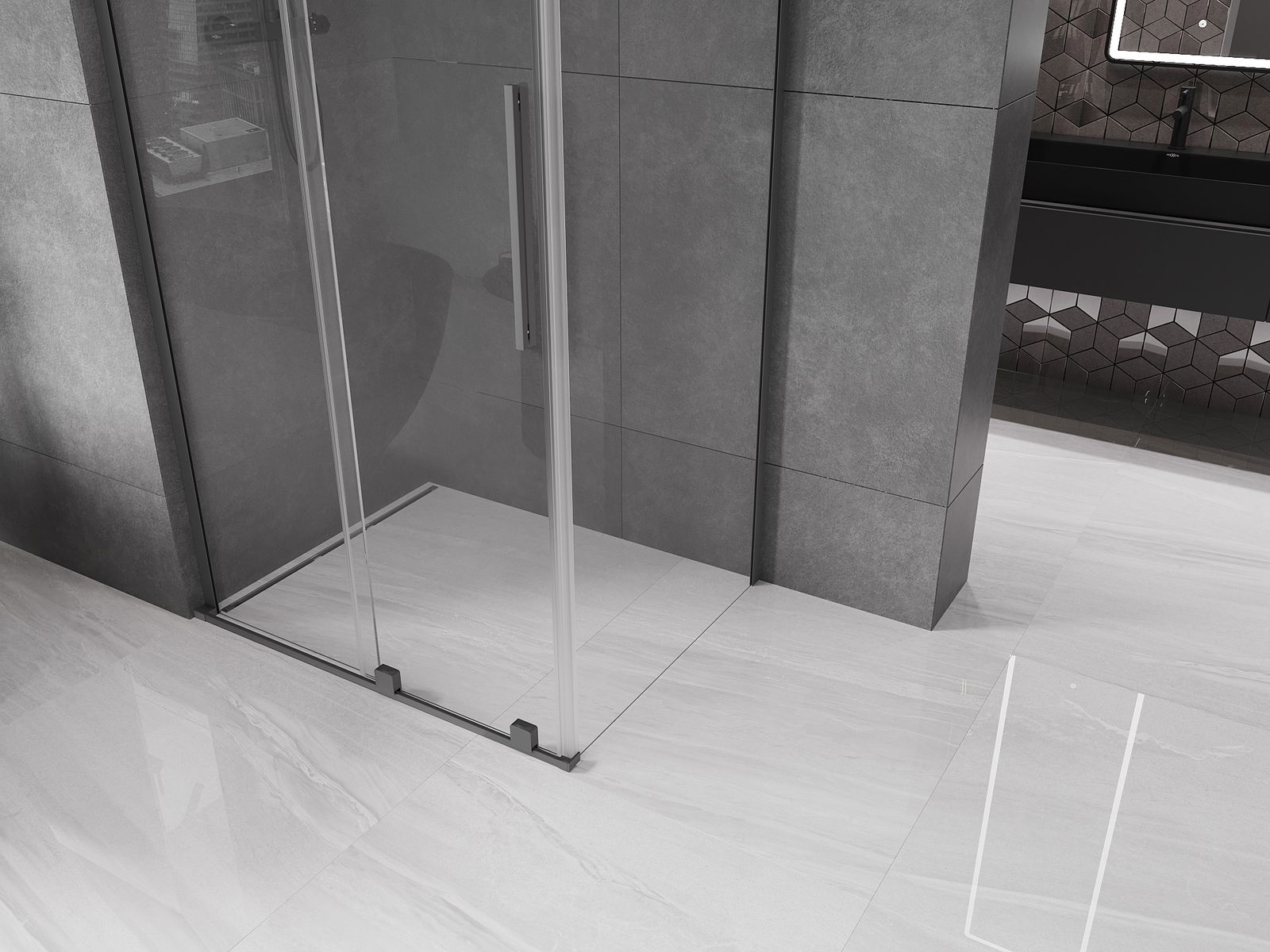 A handy and convenient handle made of stainless steel. The stylish shape combined with a finish that matches the color of the profiles gives a modern and stylish look, highlighting the aesthetics of any bathroom.