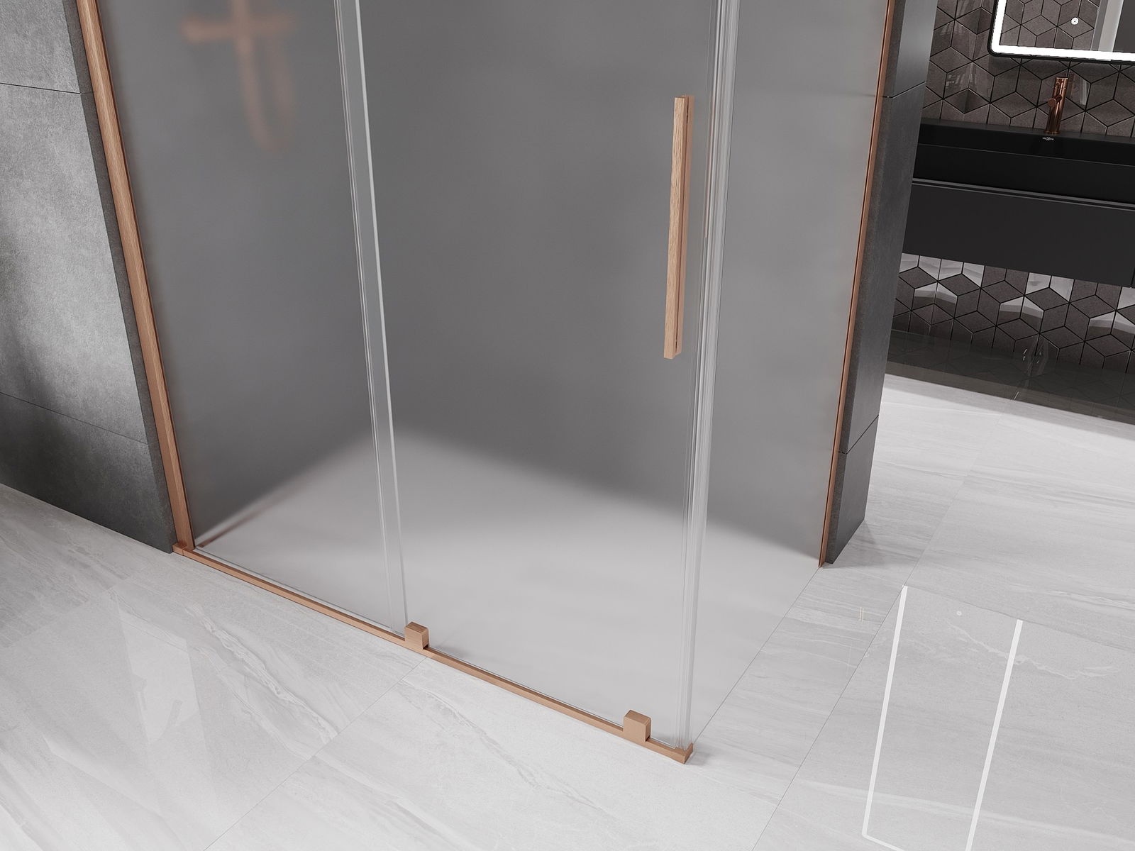 Mexen Velar sliding shower enclosure 150 x 75 cm, frost, brushed copper - 871-150-075-31-65