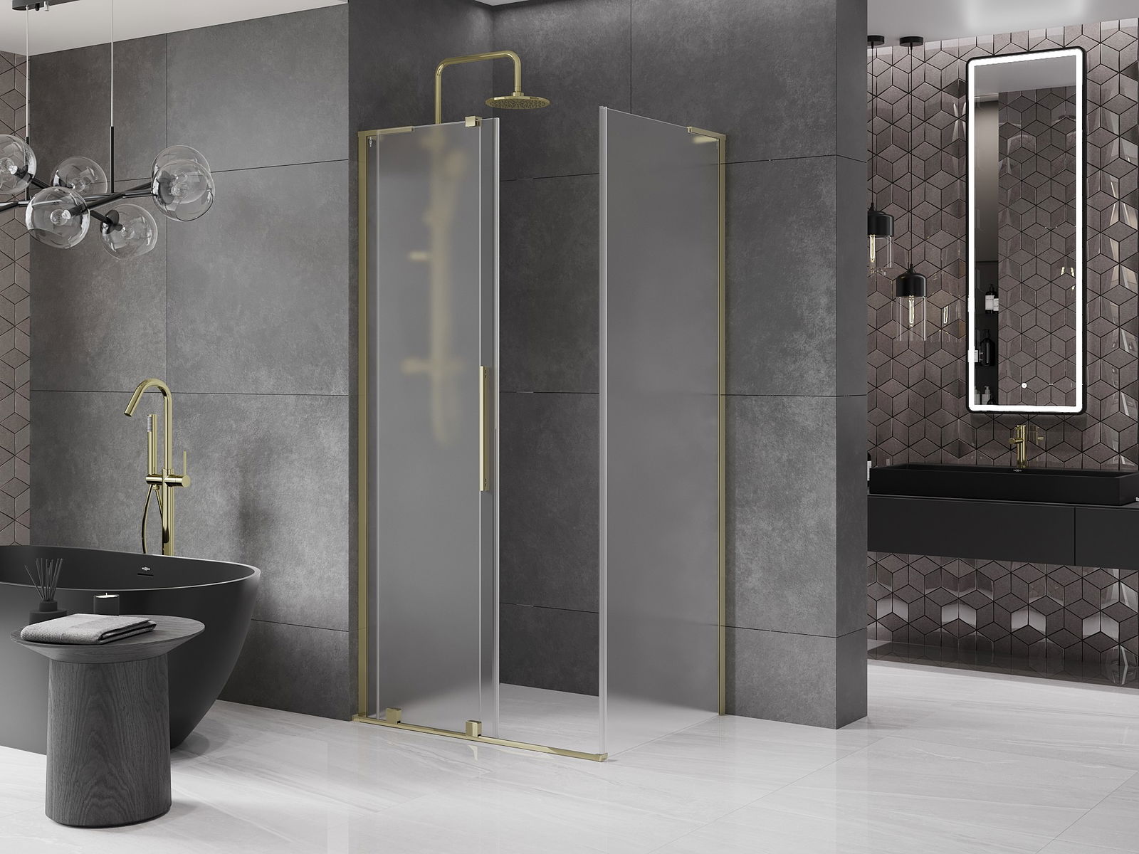 Mexen Velar L sliding shower enclosure 100 x 90 cm, frosted, gold - 871-100-090-33-50