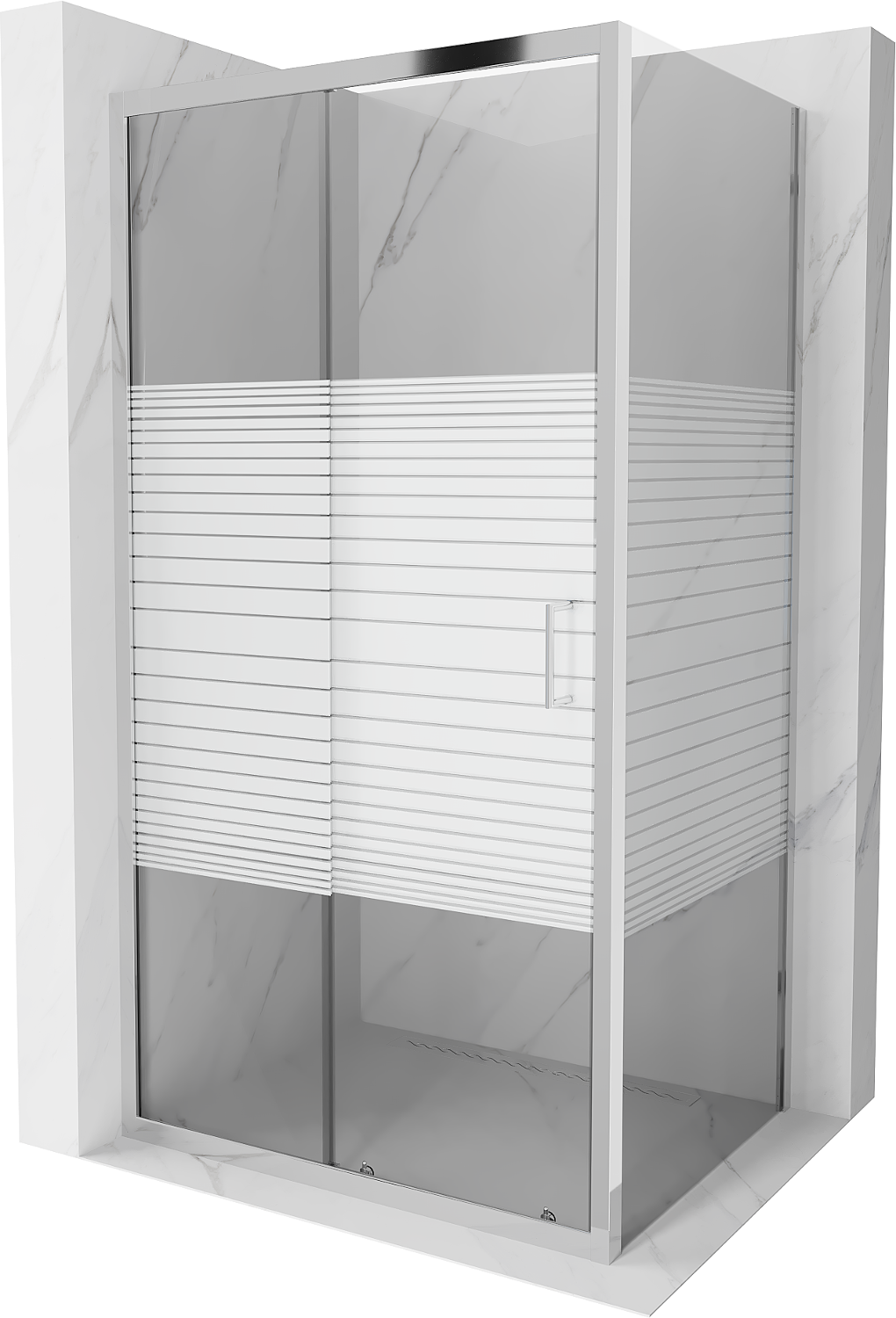 Mexen Apia sliding shower cabin 120 x 70 cm, white stripes, chrome - 840-120-070-01-20