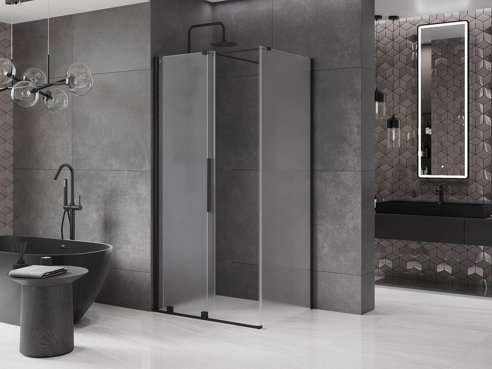 Mexen Velar sliding shower enclosure 100 x 110 cm, frosted, black - 871-100-110-31-70