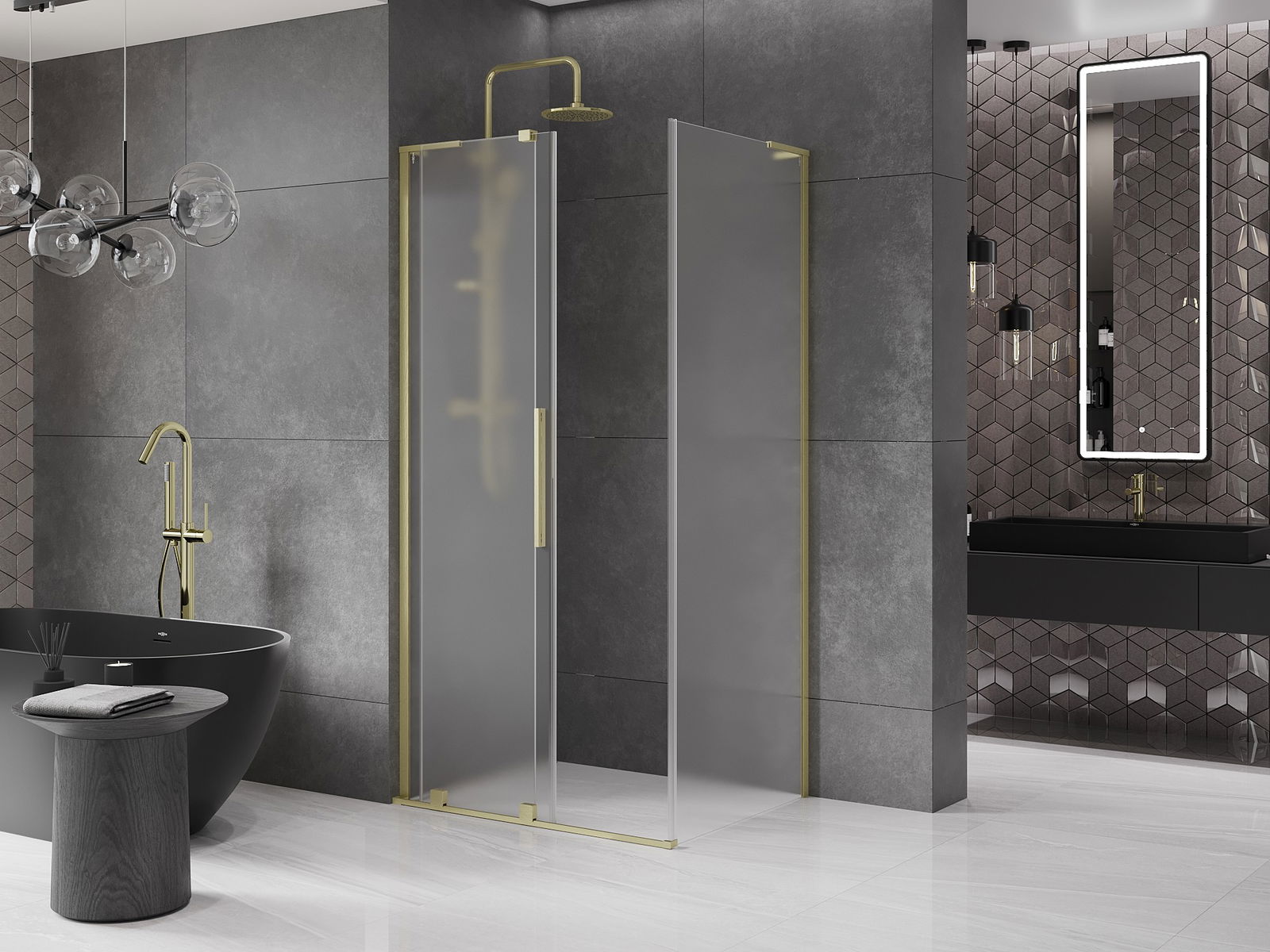 Mexen Velar L Sliding Shower Cabin 120 x 110 cm, Frosted, Brushed Gold - 871-120-110-33-55