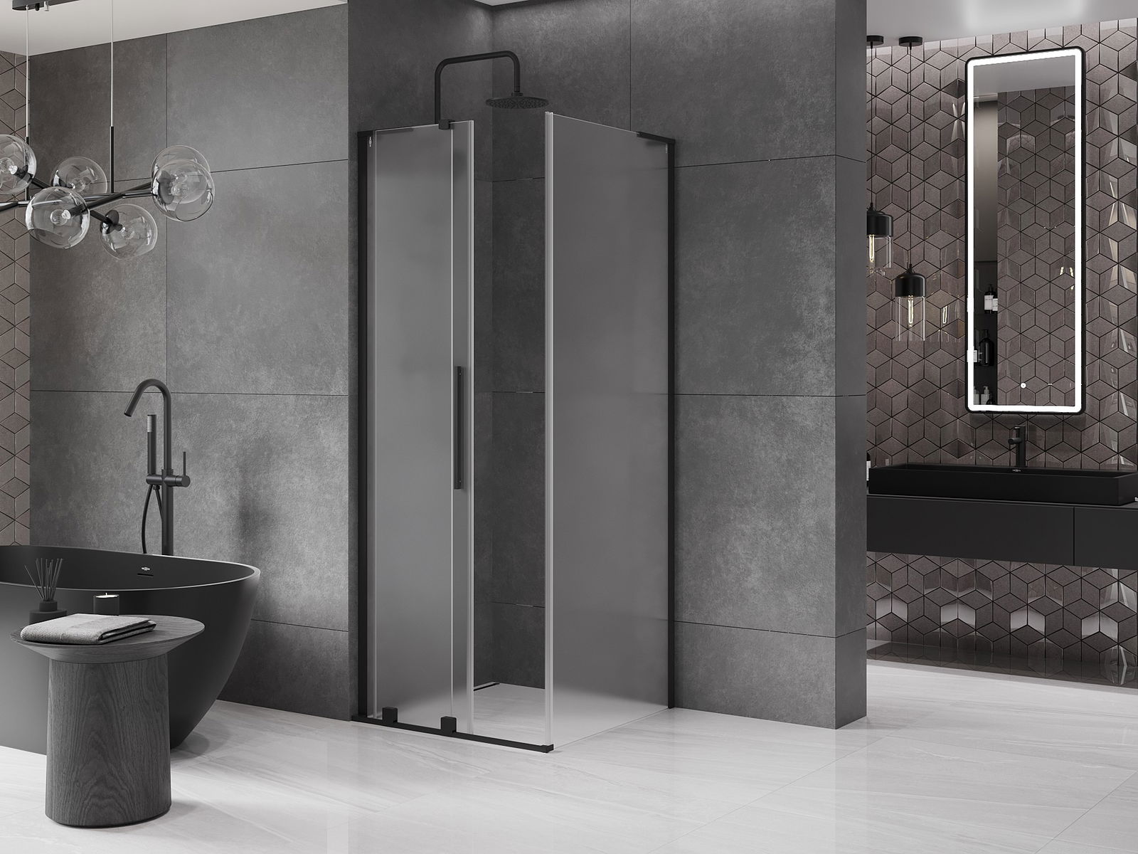 Mexen Velar L sliding shower cabin 120 x 120 cm, frost, black - 871-120-120-33-70