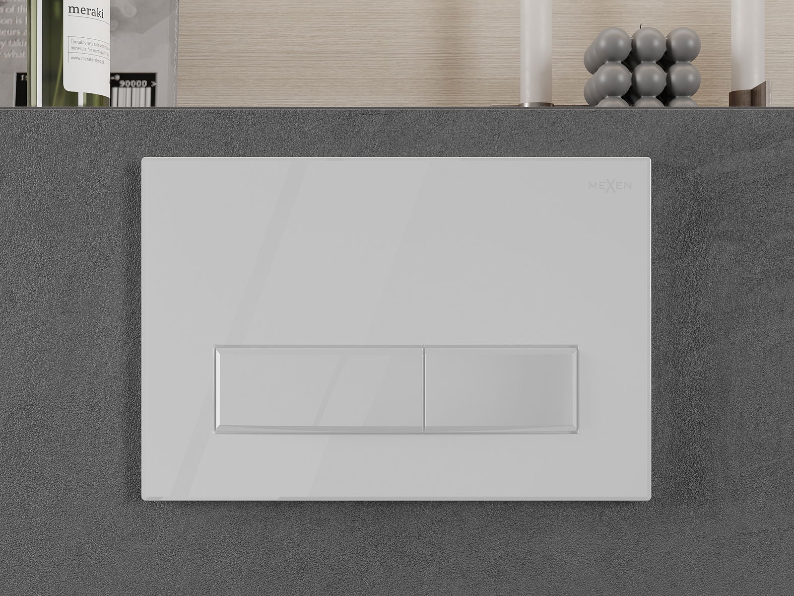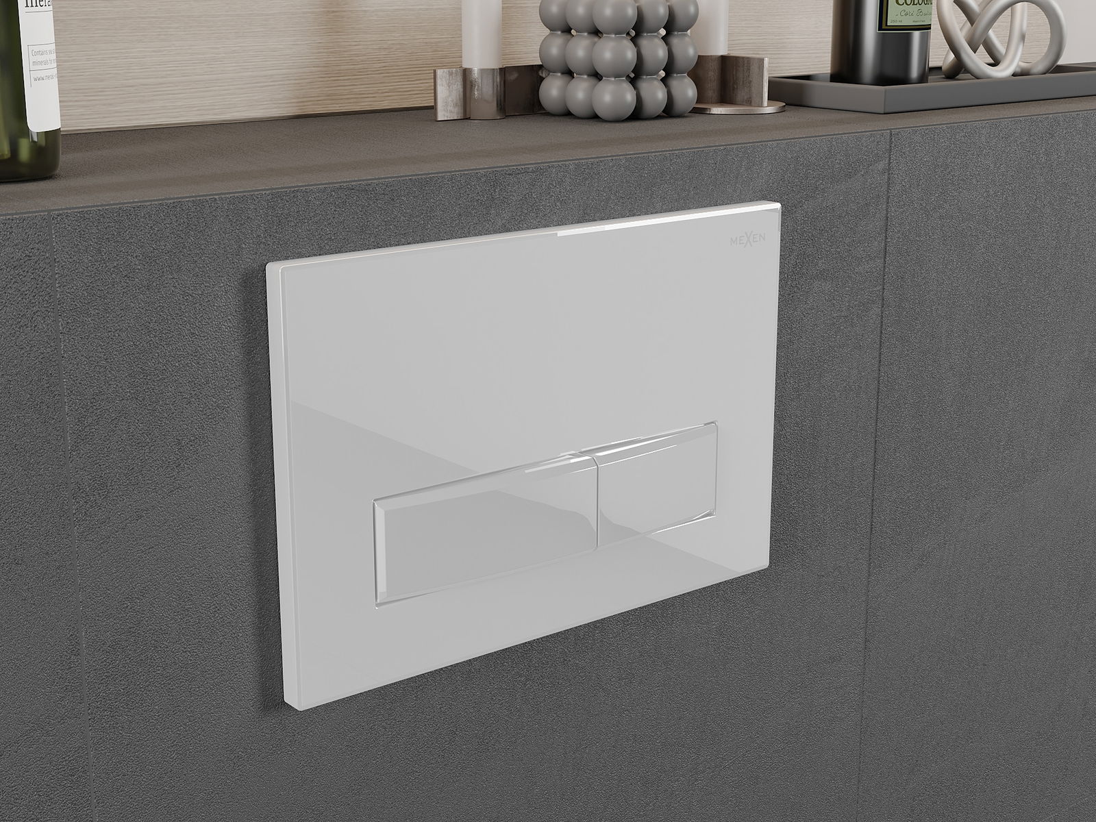 The button fits the frame from the Mexen Fenix Slim series, in which it is possible to install from the front. A popular and practical solution especially in bathrooms, where access to the button from the front is more comfortable.