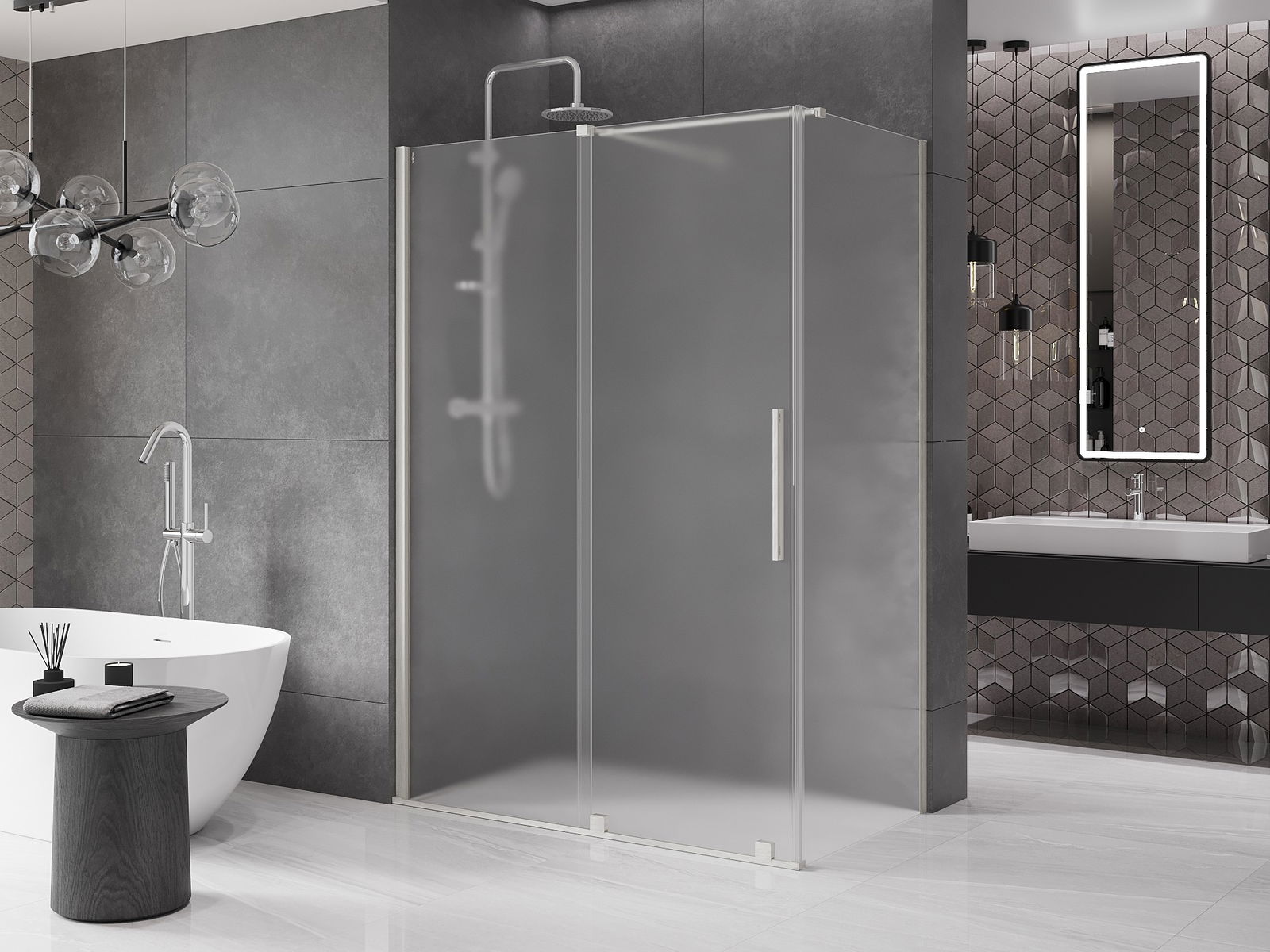 Mexen Velar sliding shower cabin 140 x 80 cm, frost, brushed nickel - 871-140-080-31-97