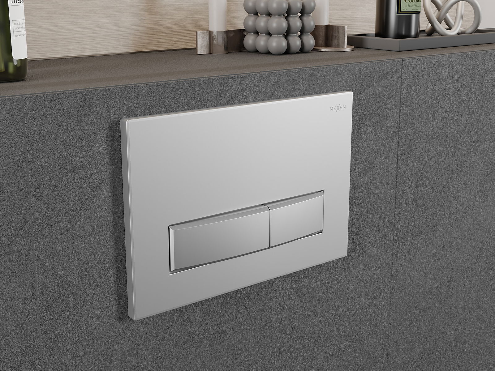 Flushing is activated in the traditional way – pressing the button activates a lever that opens the valve and flushes the water. It is a simple and intuitive solution, commonly found in bathrooms.