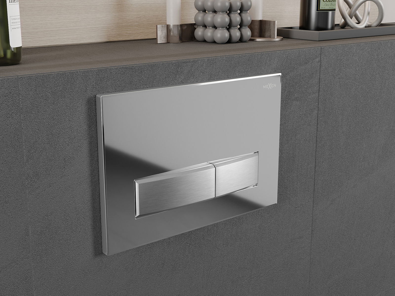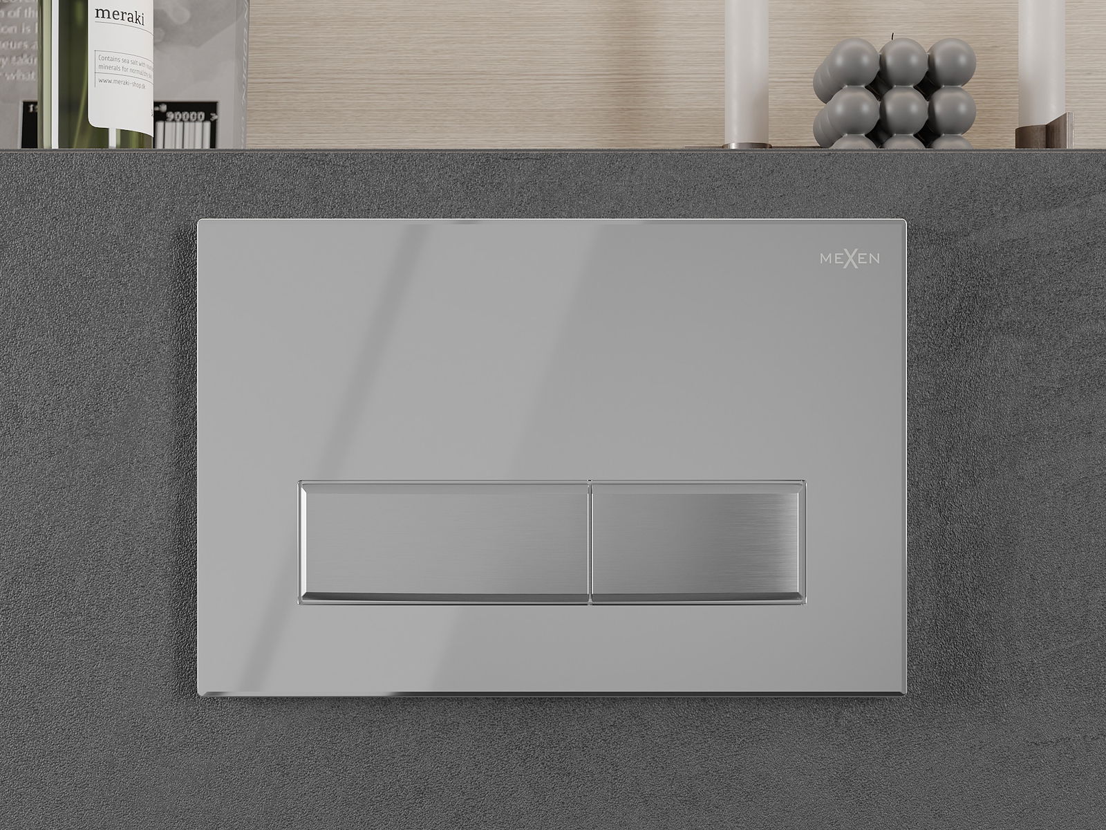 The button fits the frame from the Mexen Fenix Slim series, in which it is possible to install from the front. A popular and practical solution especially in bathrooms, where access to the button from the front is more comfortable.