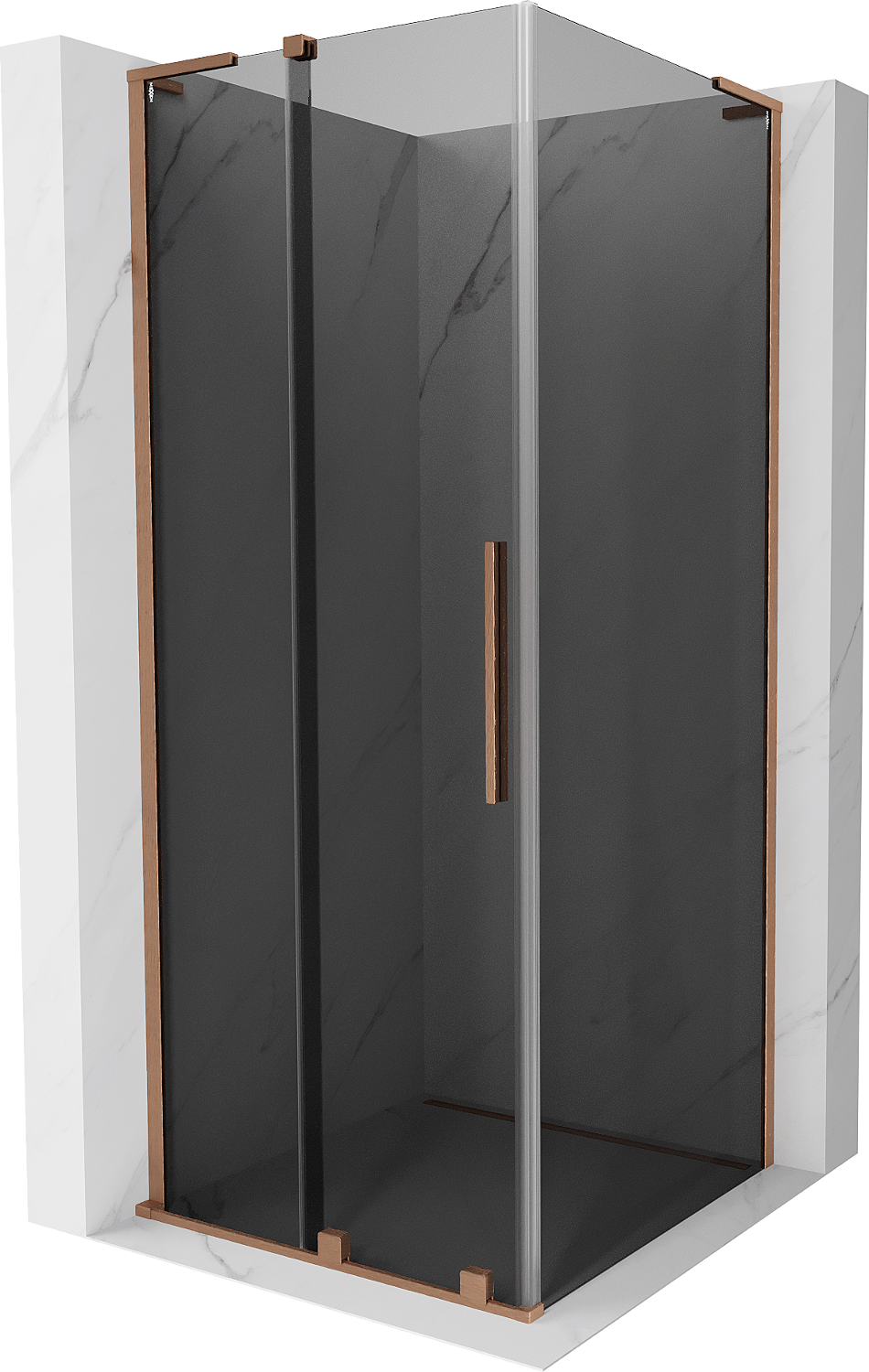 Mexen Velar L Sliding Shower Enclosure 90 x 90 cm, Graphite, Brushed Copper - 871-090-090-43-65