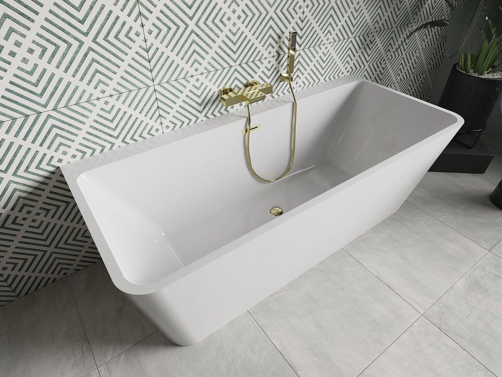 Mexen Volta freestanding wall-mounted bath 170 x 75 cm, white, gold overflow - 51131707500-50