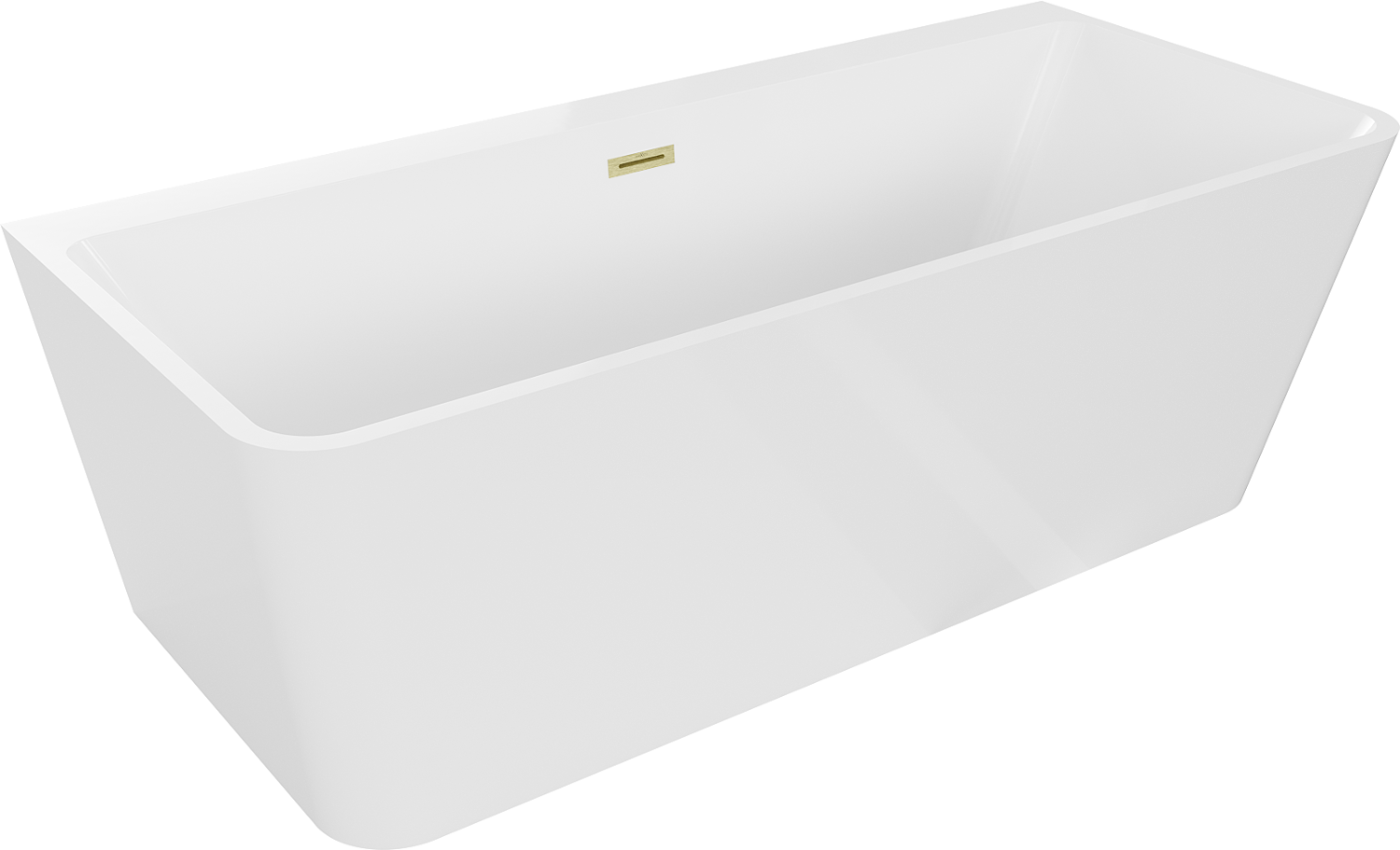 Mexen Volta freestanding back-to-wall bath 170 x 75 cm, white, overflow brushed gold - 51131707500-55
