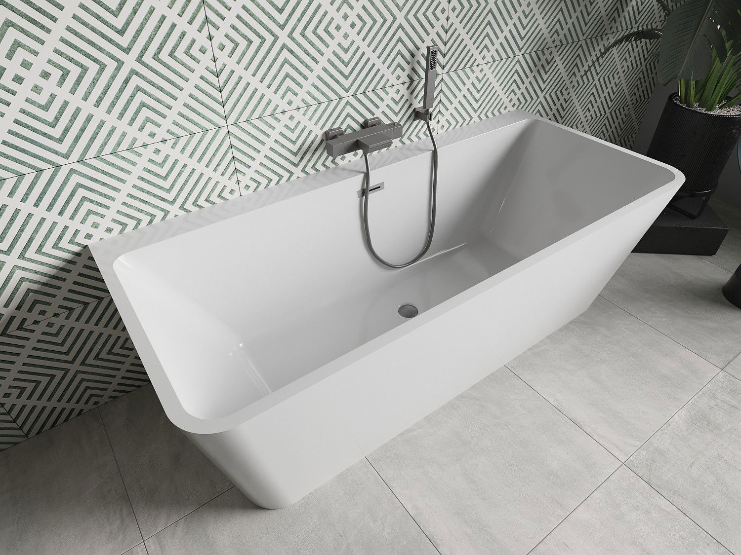 Mexen Volta freestanding back-to-wall bath 170 x 75 cm, white, overflow gun gray brushed - 51131707500-66
