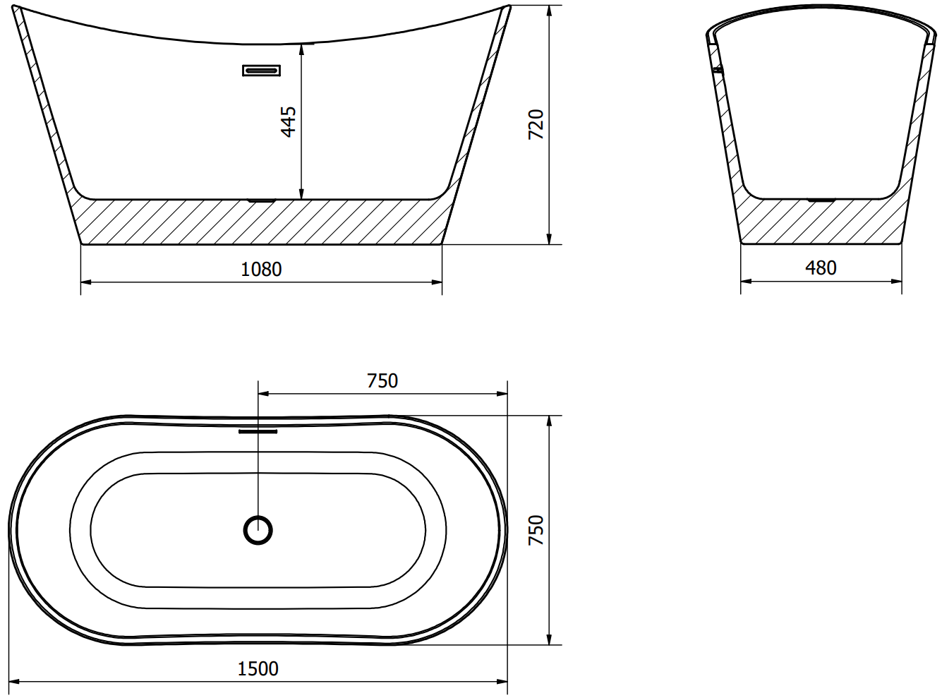 The overflow opening is referred to as the "safety opening". It allows excess water to escape, protecting the bathroom from flooding. This is a safe and practical solution that lets you enjoy a bath without worrying about the water level rising.