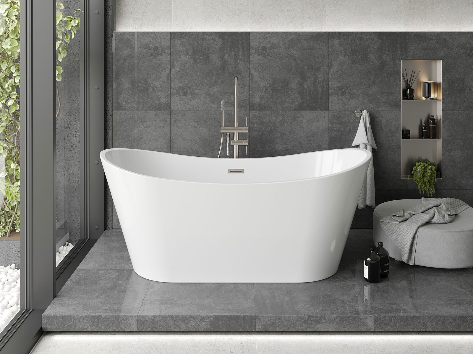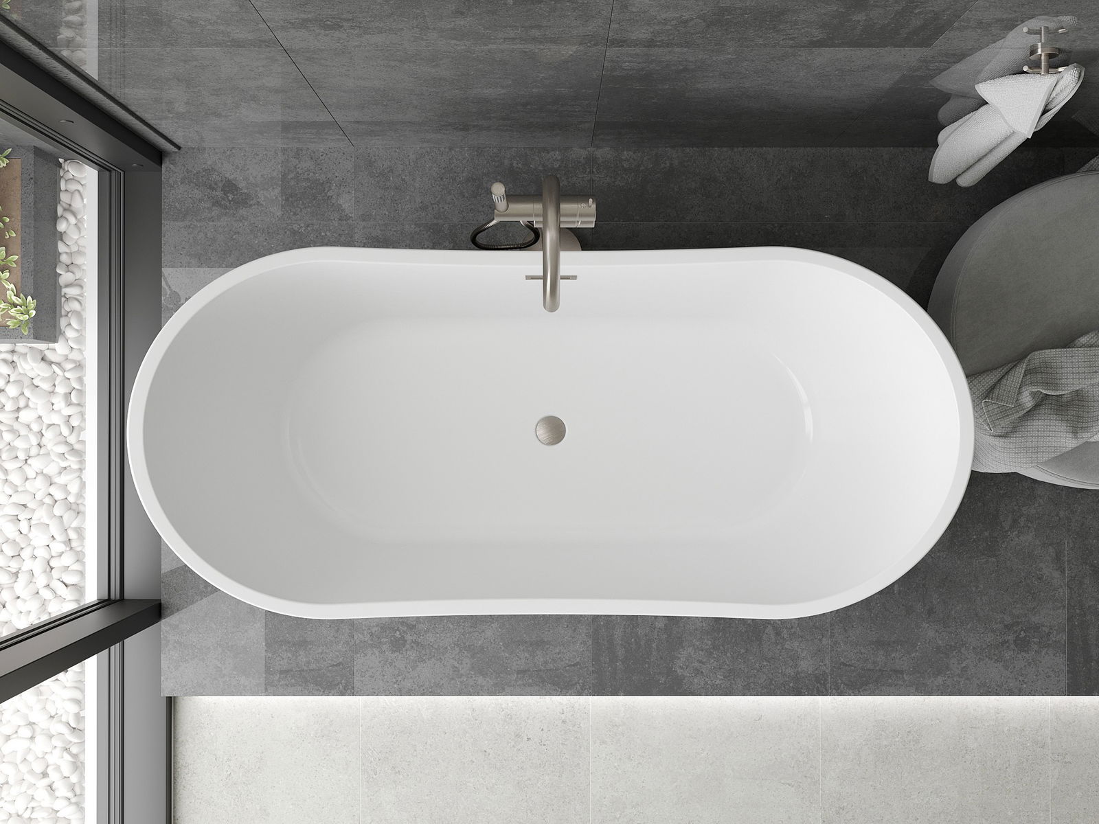 Mexen Montana is an exceptional freestanding bathtub measuring 170 x 80 cm, made from sanitary acrylic, which ensures high quality and durability. Its elegant white surface combined with brushed nickel detailing makes it an ideal addition to modern bathrooms. The bathtub has an overflow hole and is resistant to tarnishing and UV radiation, extending its aesthetic longevity. Thanks to its dimensions and oval shape, it offers the highest level of comfort in use.