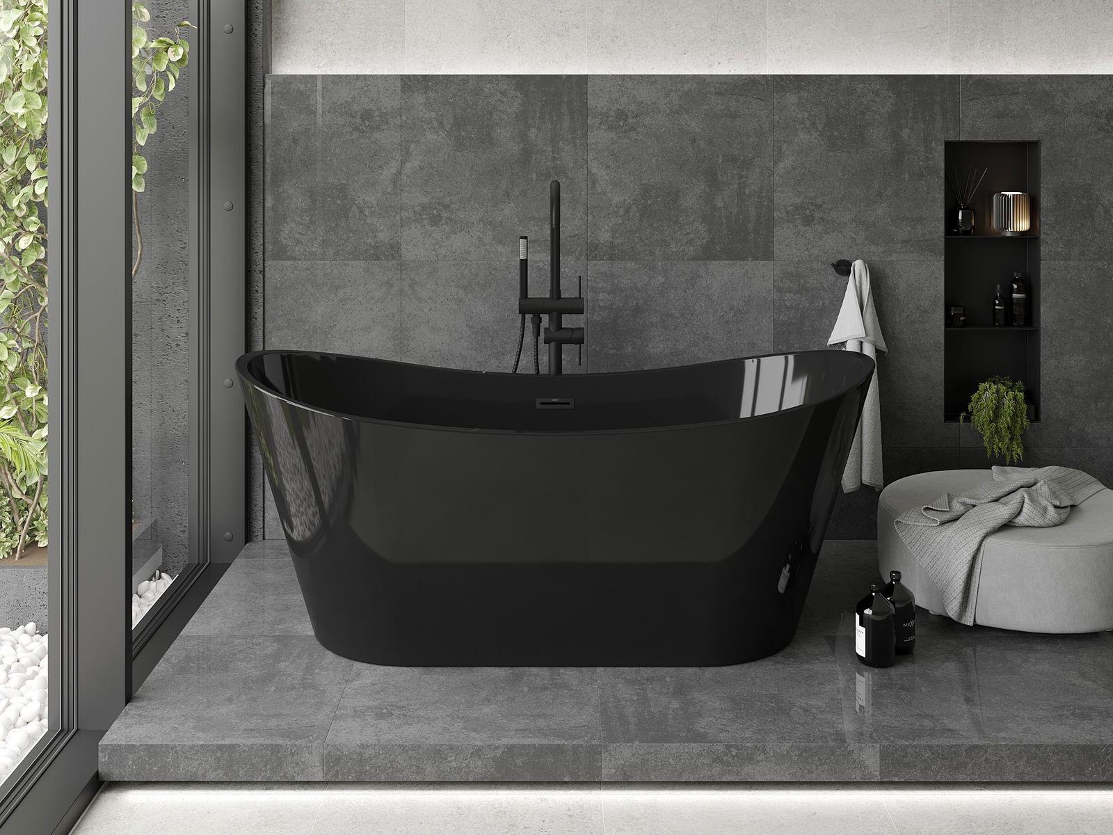 The Mexen Montana is an elegant free-standing bathtub with dimensions of 170 x 80 cm, combining style and functionality. Made from high-quality sanitary acrylic in black color with a high-gloss finish. The bathtub features a practical overflow hole and includes a siphon, and its material, resistant to matting, ensures durability for years. Thanks to its oval shape, it fits perfectly into modern bathrooms, offering comfort and relaxation after a long day.